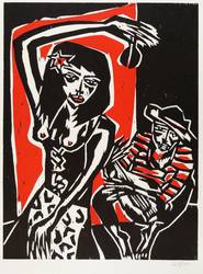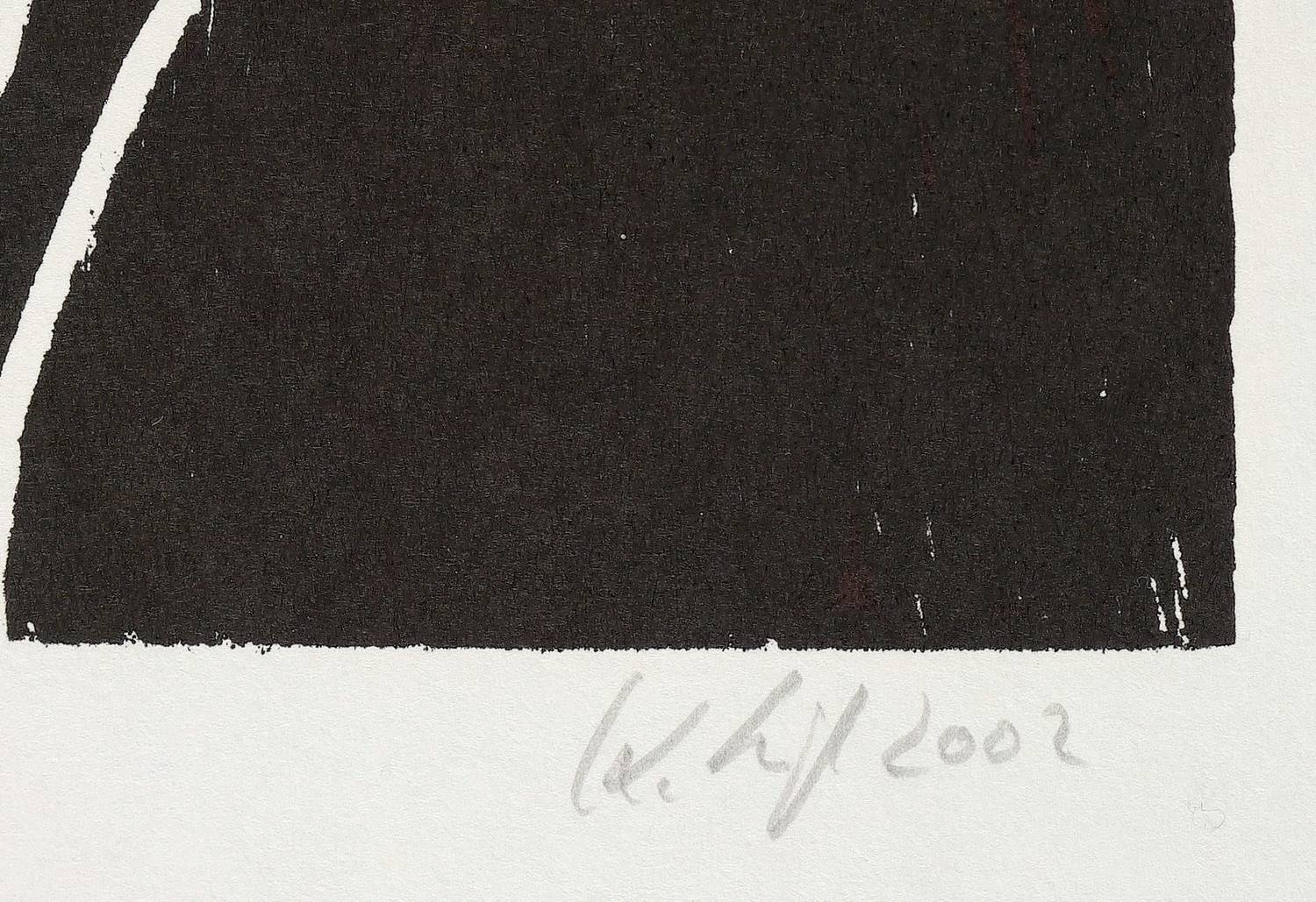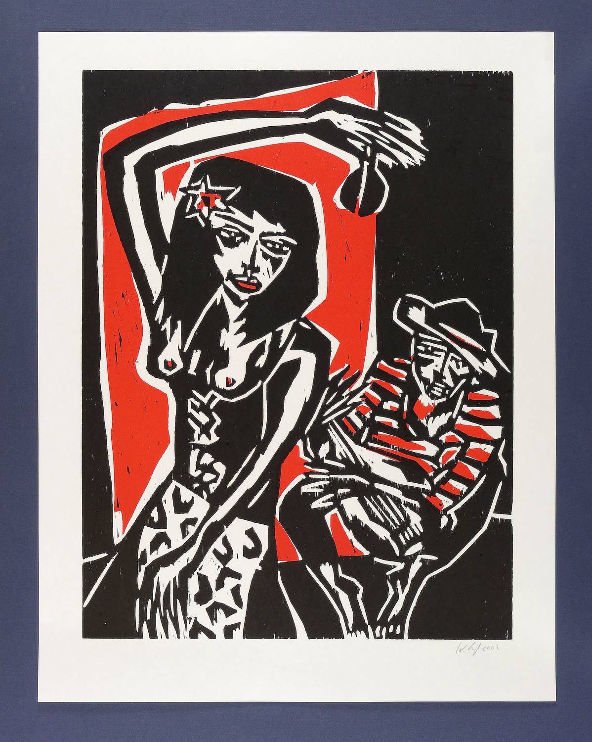 2002. Farbholzschnitt, in Rot und Schwarz. – Originale Künstlergrafik, von Klaus Süß. – 49,4 x 37,6 cm (Darstellung / Druckstock), 58 x 45 cm (Blatt).