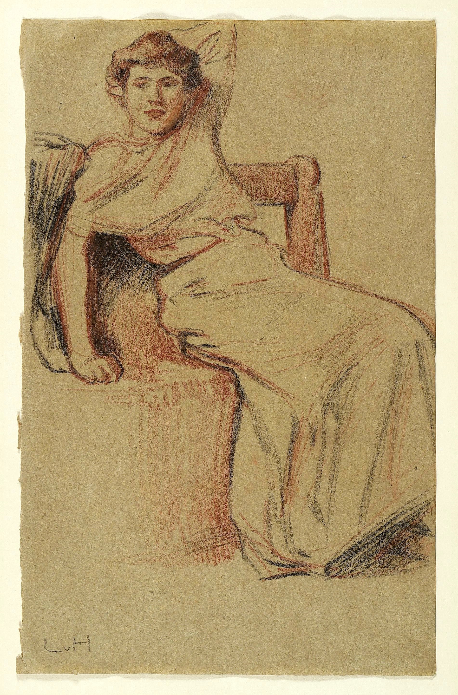 Hofmann, Ludwig von. – „Junge Frau auf einer Bank sitzend”.