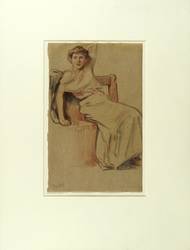 Um 1910. Zeichnung / Kreidezeichnung, in Rötel und Schwarz, auf braunem Papier. – Originale Künstlergrafik, von Ludwig von Hofmann. – Unikat. – 37,5 x 22,7 cm (Darstellung / Blatt), 63 x 48 cm (Passepartout).