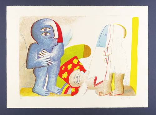 1965. Farblithografie / Kreide- & Pinsellithografie, in 6 Farben, auf hellchamois Rives-Bütten. – Originale Künstlergrafik, von Horst Antes. – Auflage Exemplar Nr. 36/60. – 39,6 x 58,6 cm (Darstellung / Druckbild), 51 x 70 cm (Blatt).