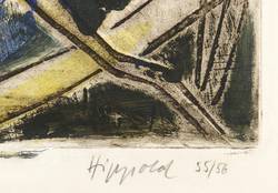 1955/1956. Farbradierung / Aquatinta, in 5 Farben, auf hellem Velinkarton. – Originale Künstlergrafik, von Erhard Hippold. – 41,1 x 64,9 cm (Darstellung / Platte), 51 x 75 cm (Blatt).