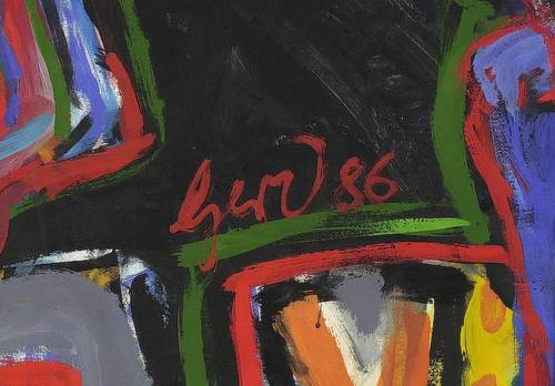 1986. Mischtechnik / Aquarell & Deckfarben, auf schwerem Büttenkarton. – Originale Künstlergrafik, von Gerd Sonntag. – Unikat. – 69,0 x 89,0 cm (Darstellung / Blatt).