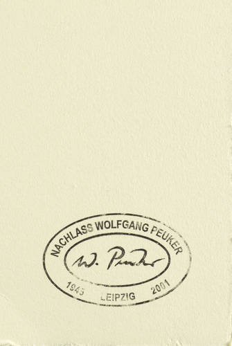 Wolfgang Peuker (1945 Aussig - 2001 Groß Glienicke). Deutscher Maler und Grafiker der Leipziger Schule. 1963-65 Ausbildung zum Offsetdrucker. 1965-70 Studium an der Hochschule für Grafik und Buchkunst Leipzig (HGB) bei Werner Tübke, Bernhard Heisig und Wolfgang Mattheuer. Danach freischaffend in Leipzig und Zwickau. 1975 Käthe-Kollwitz-Preis. 1977-89 Lehrtätigkeit an der Hochschule für Grafik und Buchkunst in Leipzig. 1983 Kunstpreis der Stadt Leipzig. 1984 Teilnahme an der Biennale in Venedig, Kunstpreis der DDR. 1990 Berufung an die Kunsthochschule Berlin-Weißensee, 1993 Professur ebenda.