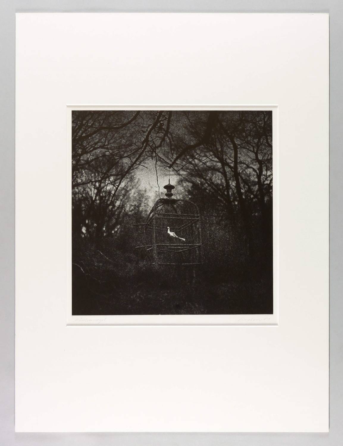 Auf dem Trägerkarton rechts unten in Bleistift signiert und datiert: ″Lindner 81″. Links Titel. – Kombinatorische Belichtung einer Voliere und dichter Vegetation. – Original auf weißem Trägerkarton befestigt und unter Passepartout gesetzt. Sehr gut erhalten.