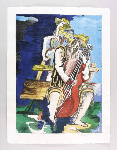 1955. Farblithografie / Kreide- & Pinsellithografie, in 7 Farben, auf kräftigem hellchamois Velin. – Originale Künstlergrafik, von Ossip Zadkine. – Auflage Exemplar Nr. 64/95. – 57,5 x 41,8 cm (Darstellung / Druckbild), 66 x 50 cm (Blatt).