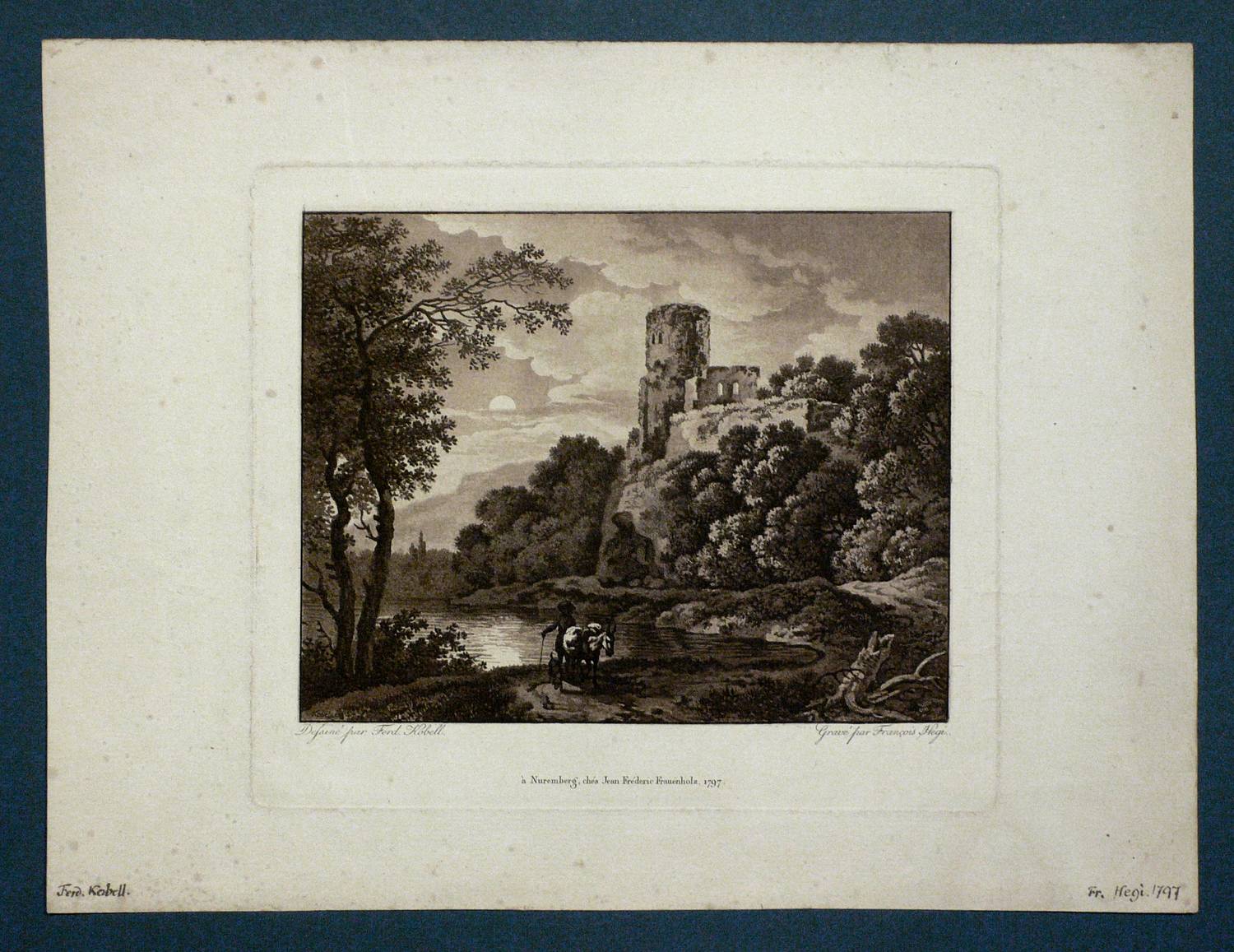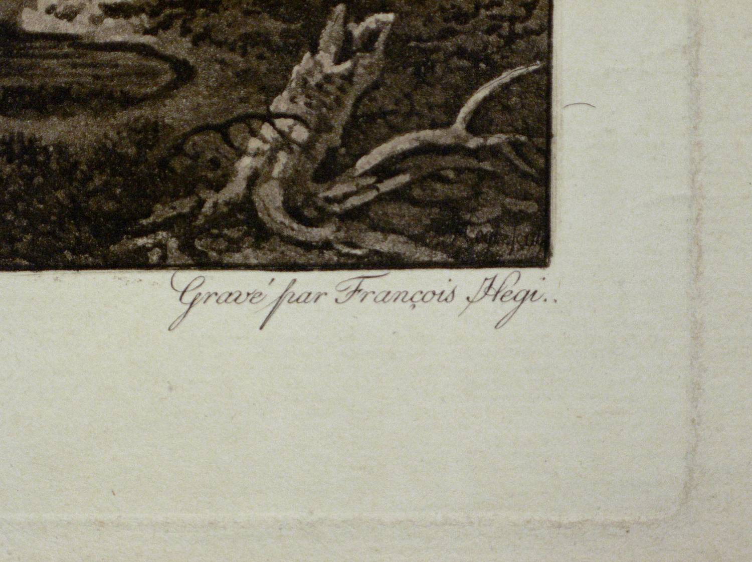 Appenzeller 495. – In der Platte rechts unter der Darstellung signiert: ″Gravé par Francois Hegi.″ Unten mittig Verlegeradresse und Datum: ″à Nuremberg, chéz Jean Fréderic Frauenholz. 1797.″ – Büttenpapier gering vergilbt und fleckig. Insgesamt guter Erhaltungszustand.