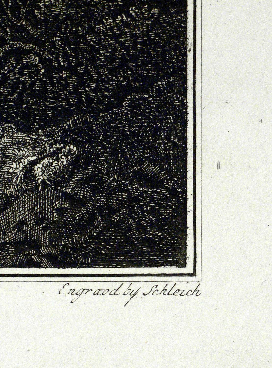 Um 1800. Radierung / Strichätzung. – Originale Künstlergrafik, von Karl Schleich. – 13,1 x 18,5 cm (Darstellung), 16,4 x 23,3 cm (Platte), 20 x 27 cm (Blatt).