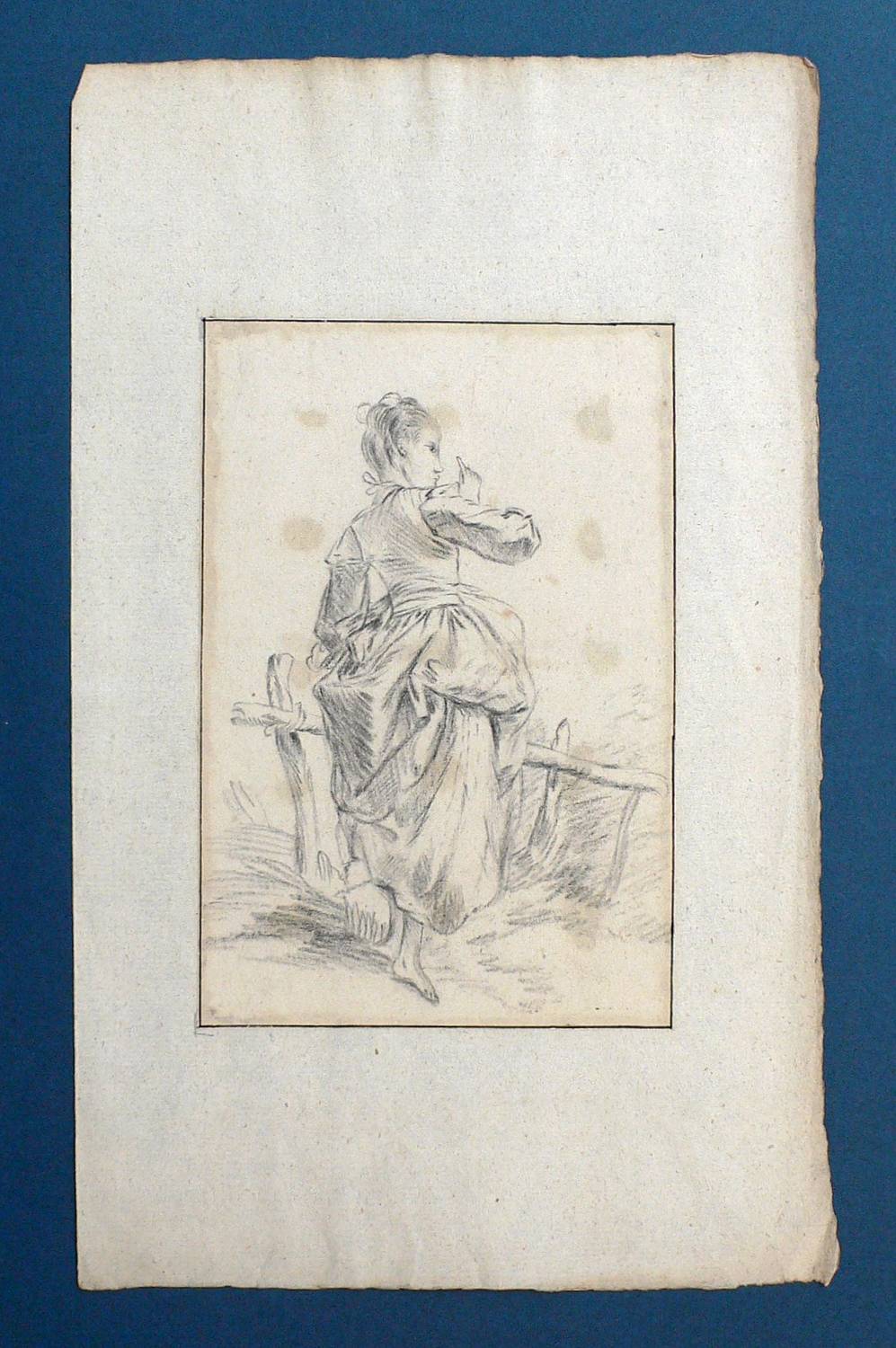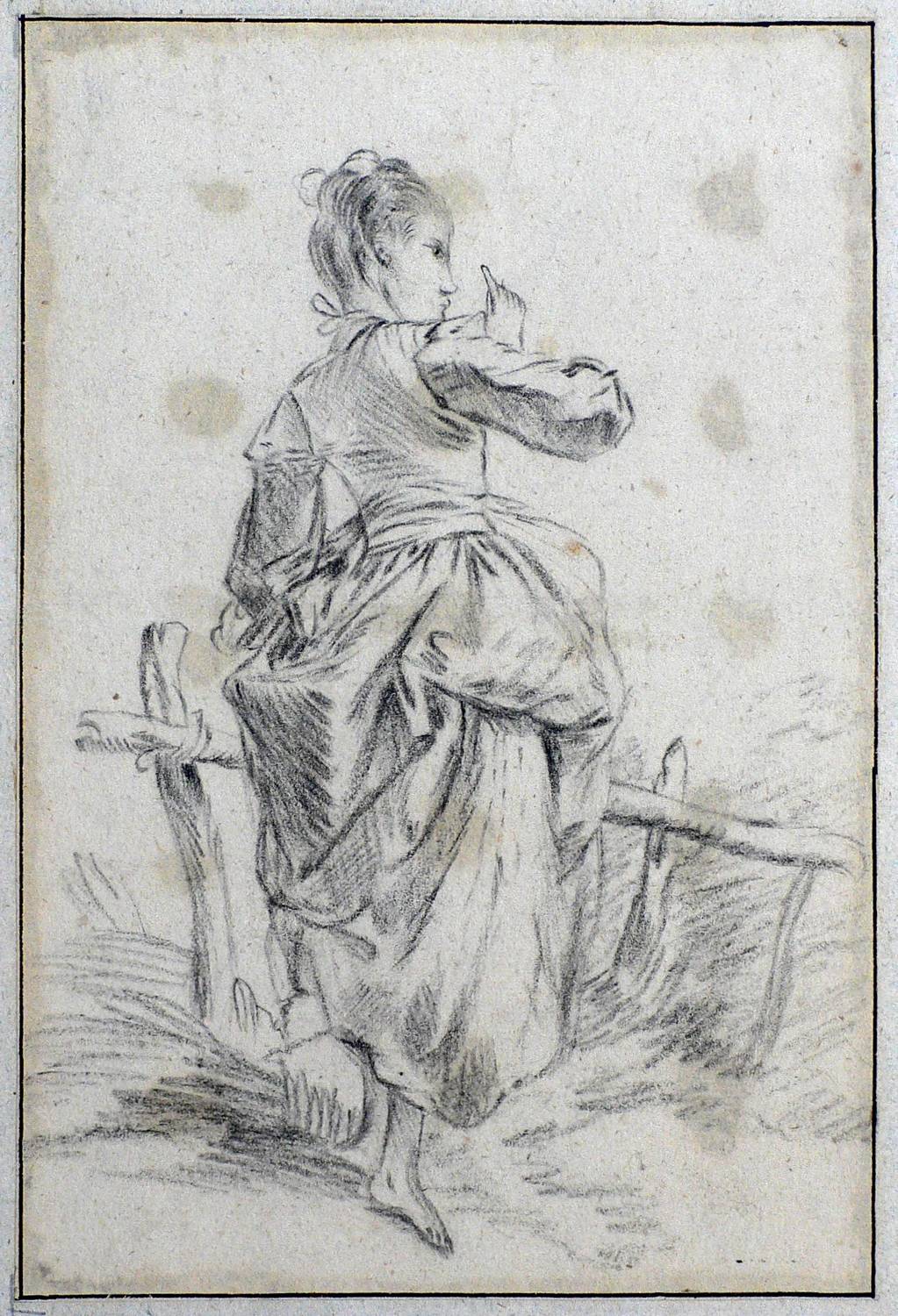 Um 1790. Zeichnung / Kohlezeichnung, auf Bütten. – Originale Künstlergrafik, von Deutsch (18. Jh.). – Unikat. – 17,3 x 13,2 cm (Darstellung), 19,9 x 13,4 cm (Blatt), 34,5 x 21 cm (Trägerblatt).