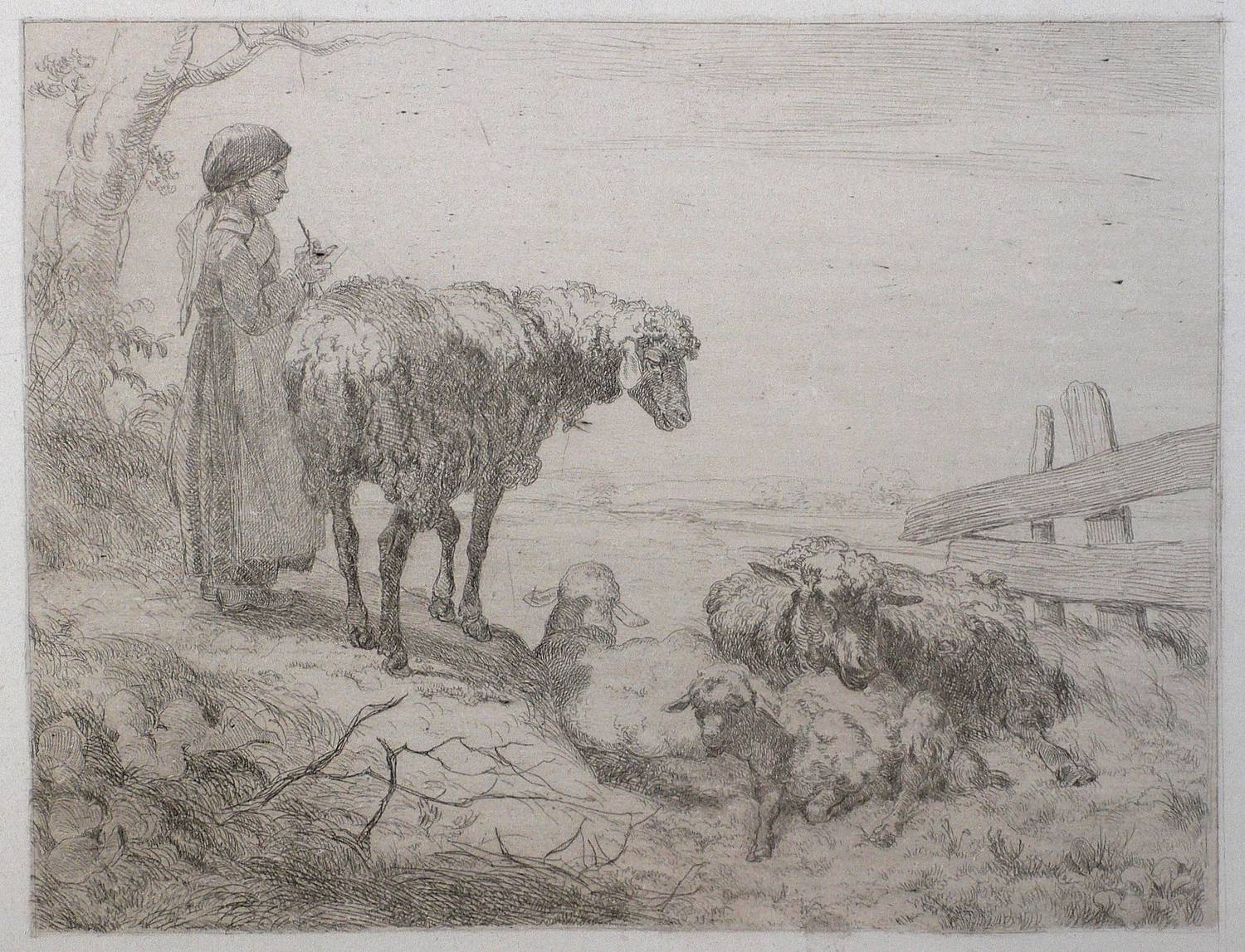 Koller, Rudolf Johann. – Junge Hirtin mit Schafen.