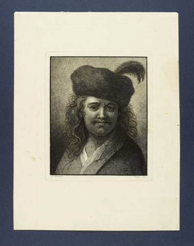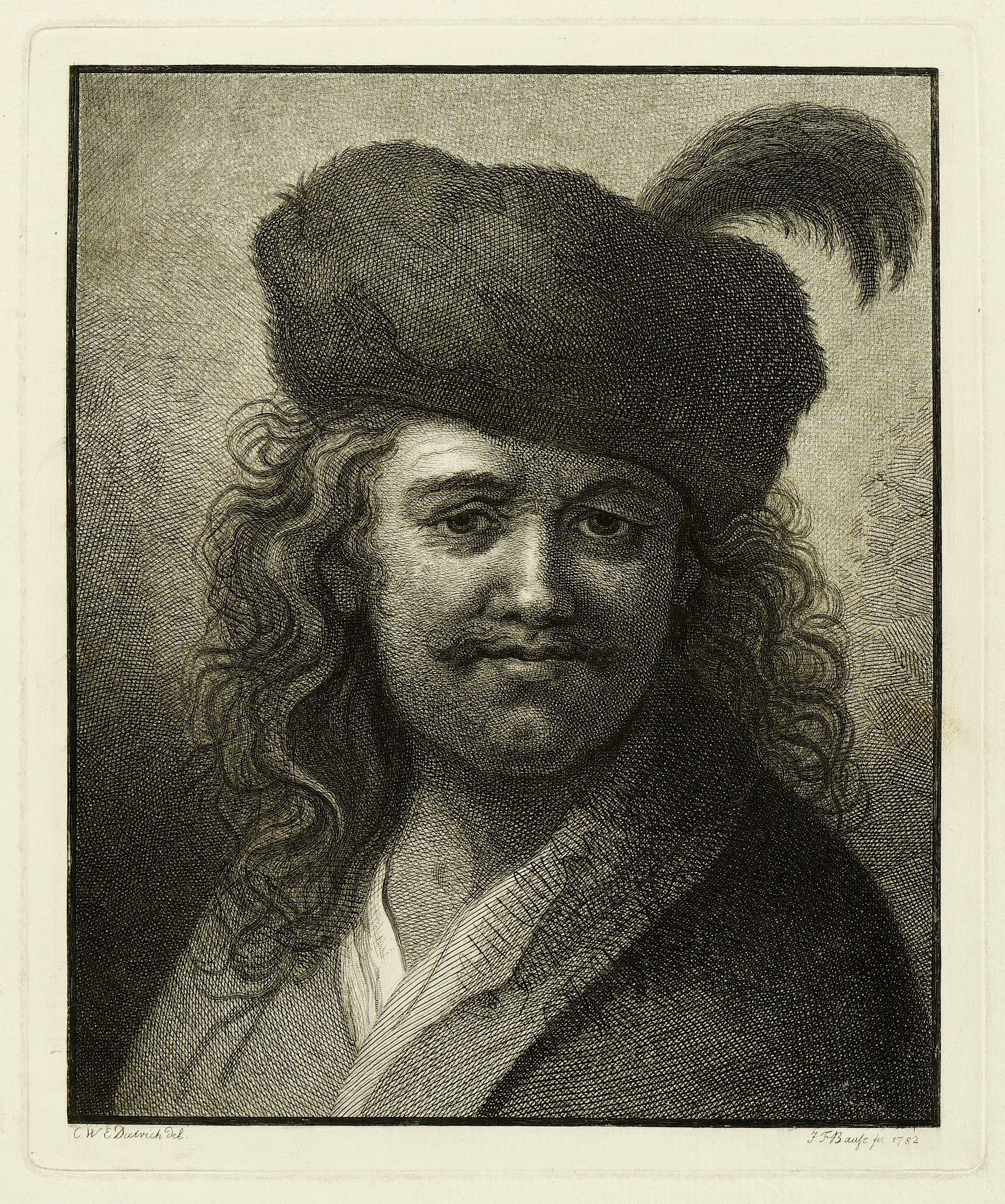 Bause, Johann Friedrich. – Nach Dietricy. – „Brustbild des Mannes mit Knebelbart und Mütze”.