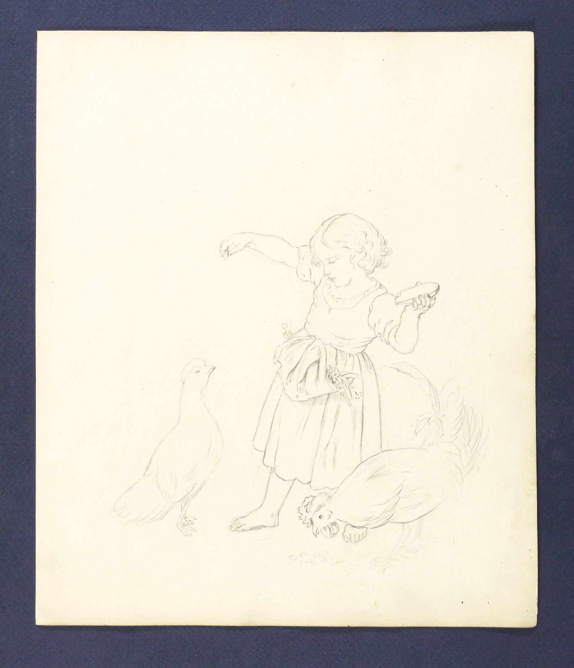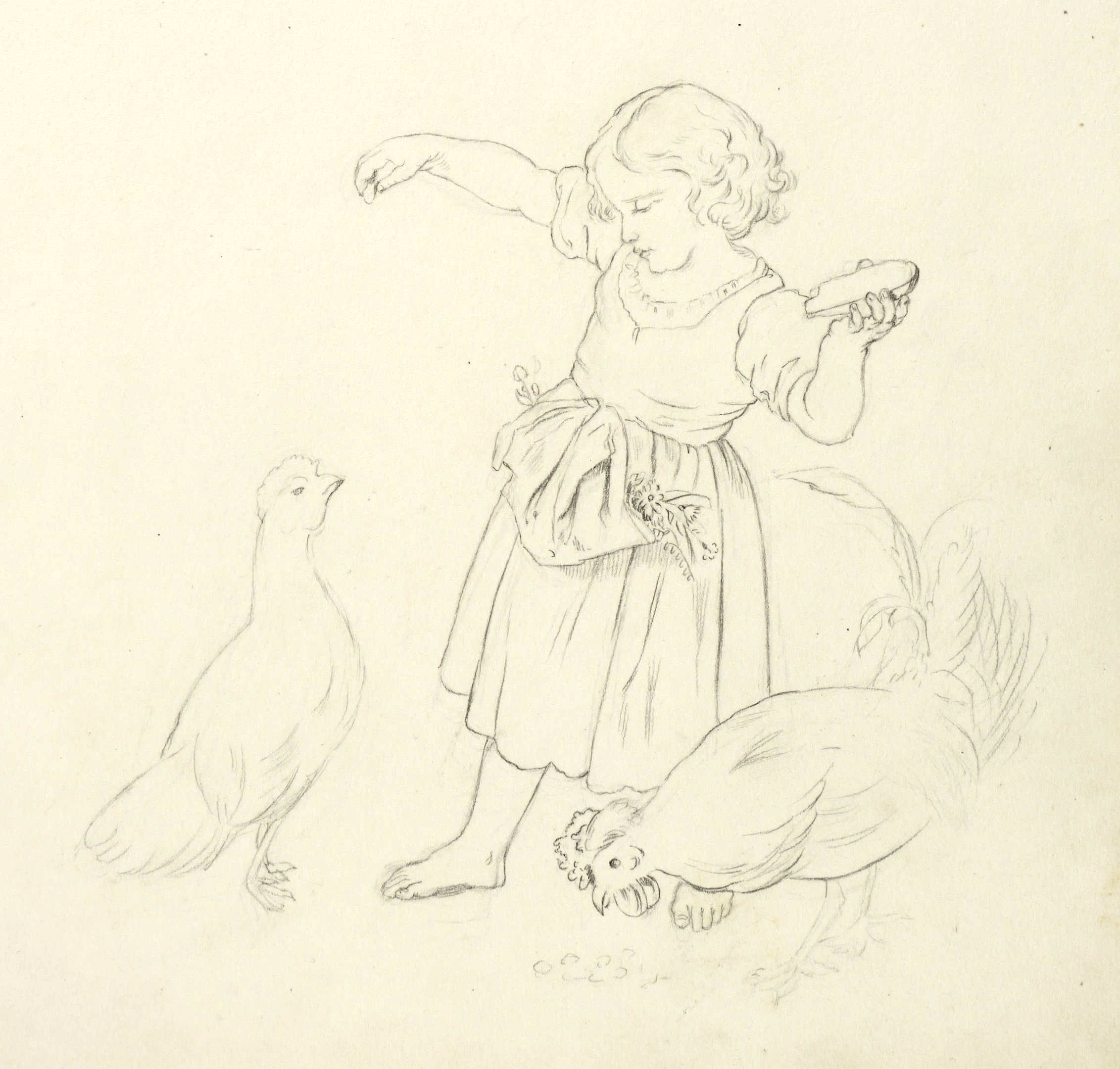 Roth, Sophie von. – „Mädchen beim Hühnerfüttern”.
