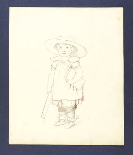 1859. Zeichnung / Bleistiftzeichnung, partiell aquarelliert, auf Wathman-Büttenkarton. – Originale Künstlergrafik, von Sophie von Roth. – Unikat. – 18,0 x 11,0 cm (Darstellung), 26,5 x 22 cm (Blatt).