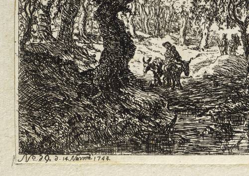 1744. Radierung / Strichätzung. – Originale Künstlergrafik, von Christian Ludwig von Hagedorn. – 12,8 x 17,5 cm (Darstellung / Einfassungslinie), 13,2 x 17,7 cm (Blatt), 21 x 25 cm (Trägerblatt).
