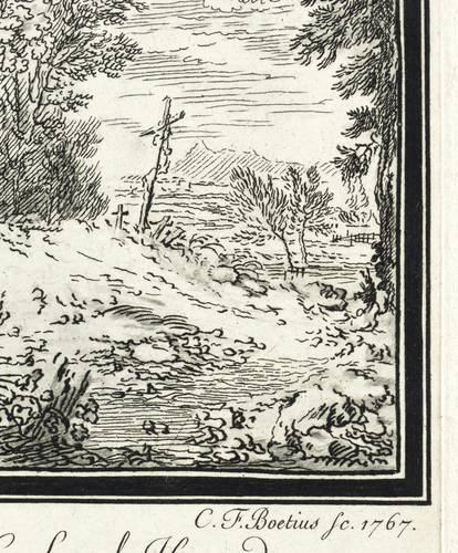 1767. Radierung / Strichätzung & Kaltnadel, in Schwarz, auf Büttenkarton. – Originale Künstlergrafik, von Christian Friedrich Boetius. – 18,8 x 12,4 cm (Darstellung / Einfassungslinie), 20,8 x 12,9 cm (Platte), 29 x 21 cm (Blatt).