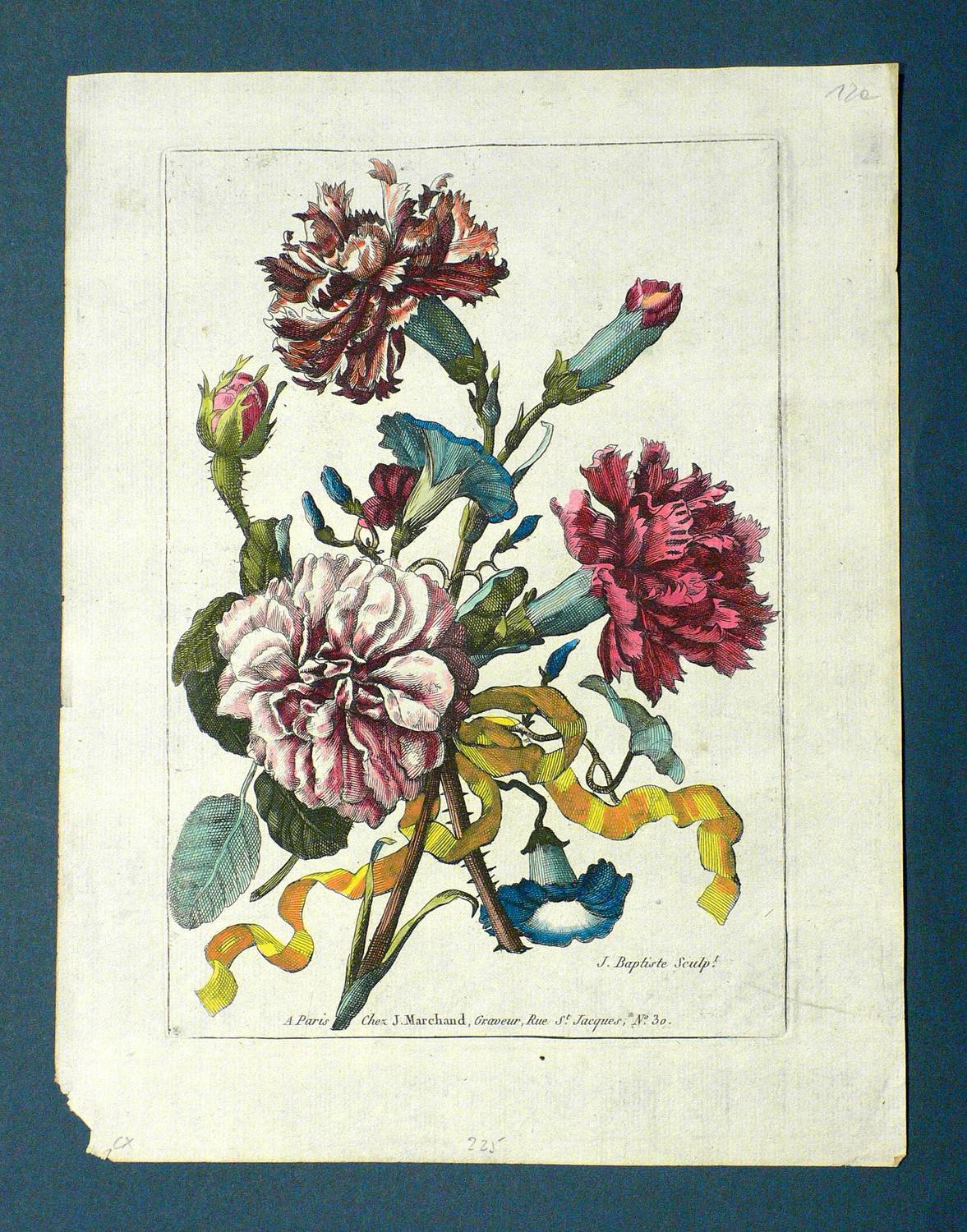 (Paris: J. Marchand [1790]). – In der Platte signiert: ″J. Baptiste Sculp.t″. Am unteren Rand Verlegeradresse: ″A Paris Chez J. Marchand, Graveur, Rue S.t Jacques, No. 30.″ – Kleine Fehlstelle in der linken unteren Ecke. Sonst gut erhalten.