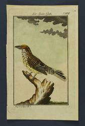 Aus: Georges Louis Le Clerc de Buffon, Herrn von Buffons Naturgeschichte der Vögel (Berlin: Joachim Pauli 1772-1826). – Links oberhalb der Darstellung betitelt und rechts bezeichnet "T. DXVIII". Links unten bezeichnet "Büff. N. d. Vögel" XIV T". – Papier altersbefingt etwas gebräunt. Links unten winziger Einriß. Oberer Blattrand leicht angeschmutzt. Insgesamt gut erhalten.