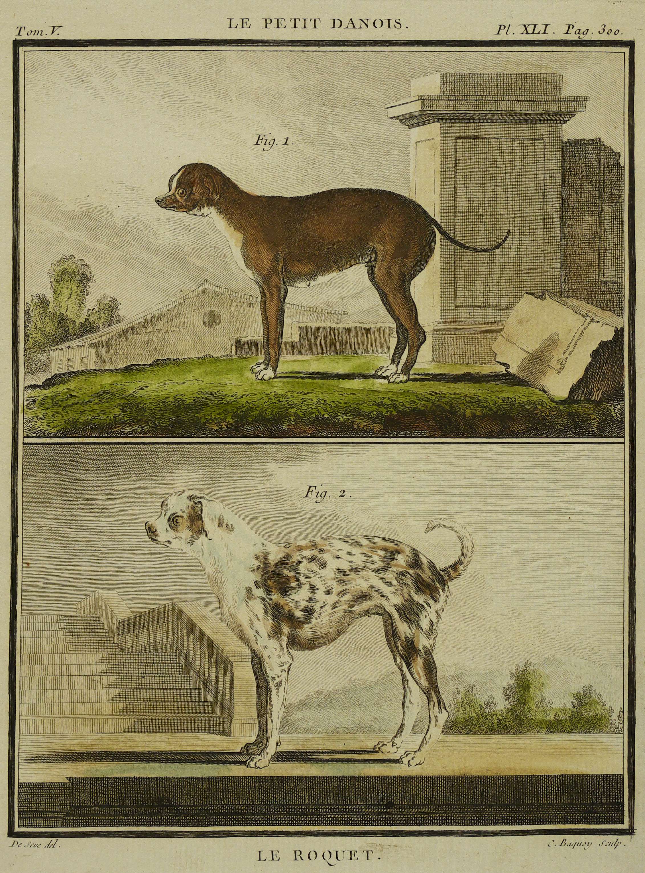 Aus: Georges Louis Le Clerc de Buffon, Histoire naturelle, générale et particulière (Paris: l'Imprimerie royale 1749-1789). – In der Darstellung bezeichnet "Fig.1" und "Fig.2". Darunter mit gestochener Schrift rechts unten "C. Baquy sculp." und links "De Seve del.". Oberhalb und unterhalb der Darstellung mittig betitelt. Oben rechts bezeichnet "Pl. XLI Pag. 300" und links "Tom. V." – Papier leicht angeschmutzt und etwas berieben. Guter Gesamtzustand.
