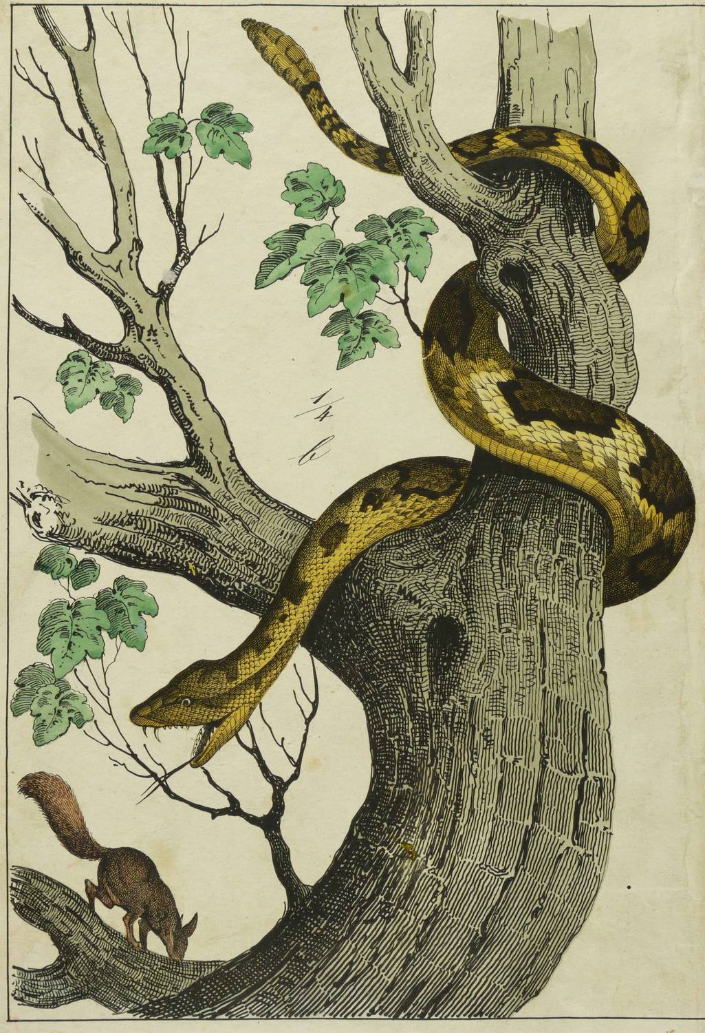 Reptilien. - Schlangen. – Klapperschlange mit Eichhörnchen. – Schubert.