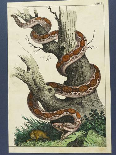 Aus: Gotthilf Heinrich von Schubert, Naturgeschichte der Amphibien, Fische, Weich- und Schaalenthiere, Insekten, Würmer und Strahlenthiere in Bildern. treu theils nach der Natur [...] (Eßlingen: Verlag J.F. Schreiber 1842). – Rechts oben nummeriert "Tab. 1". – Papier leicht gebräunt. Etwas fleckig und angeschmutzt. Stark beschnitten. Noch gut erhalten.