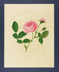 Aus: Carl Gottlob Roessig, Die Rosen nach der Natur gezeichnet und colorirt (Leipzig: Industrie-Comptoir 1802-1817). – Links unten in der Platte bezeichnet "Cah. 2" und rechts unleserlich bezeichnet. – Beiliegend das zugehörige Textblatt mit der Originalbeschreibung in Deutsch und Französisch. - Die Darstellung fast vollständig frei gouachiert. Blatt von seltener Schönheit. – Papier gebräunt und stärker fleckig. Insgesamt leicht knickspurig. Guter Gesamtzustand.