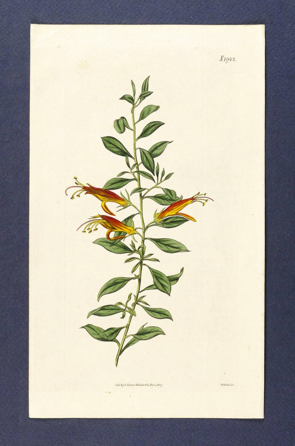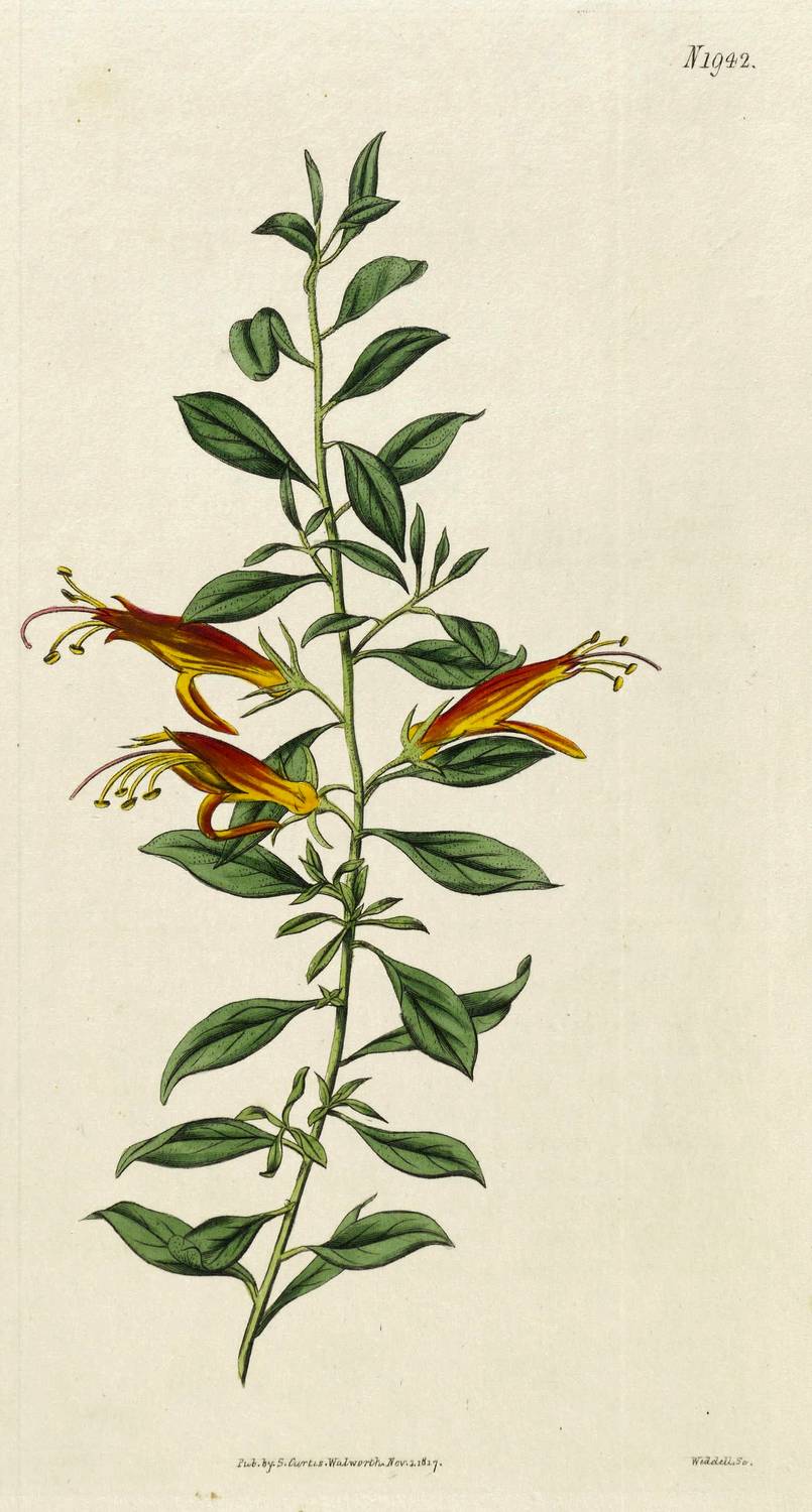 Aus: Curtis's botanical magazine or flower-garden displayed (London: Royal Horticultural Society / Sherwood, Neely & Jones / Lovell Reeve & Co 1790-1920), Bd. 1-146. – In der Platte links unten signiert: "Weddell sc." Oben rechts bezeichnet: "N 1942." Unten mittig Verlegeradresse und Datierung. – Guter Zustand.