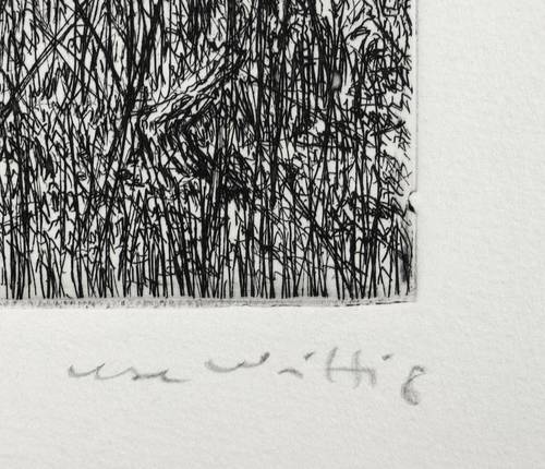 Um 1988. Radierung / Strichätzung, in Schwarz, auf hellchamois Velin. – Originale Künstlergrafik, von Ute Wittig. – 24,0 x 20,0 cm (Darstellung / Platte), 39 x 27 cm (Blatt).