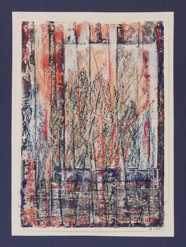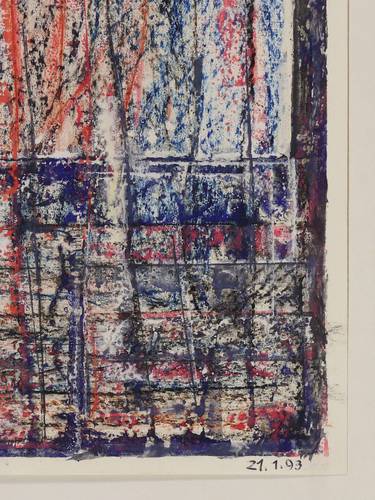 1993. Mischtechnik / Frottage, Glasdruck & Gouache, auf Papier. – Originale Künstlergrafik, von Erhard Nestler. – Unikat. – 29,5 x 21,0 cm (Darstellung / Blatt), 31,5 x 22,5 cm (Trägerblatt).