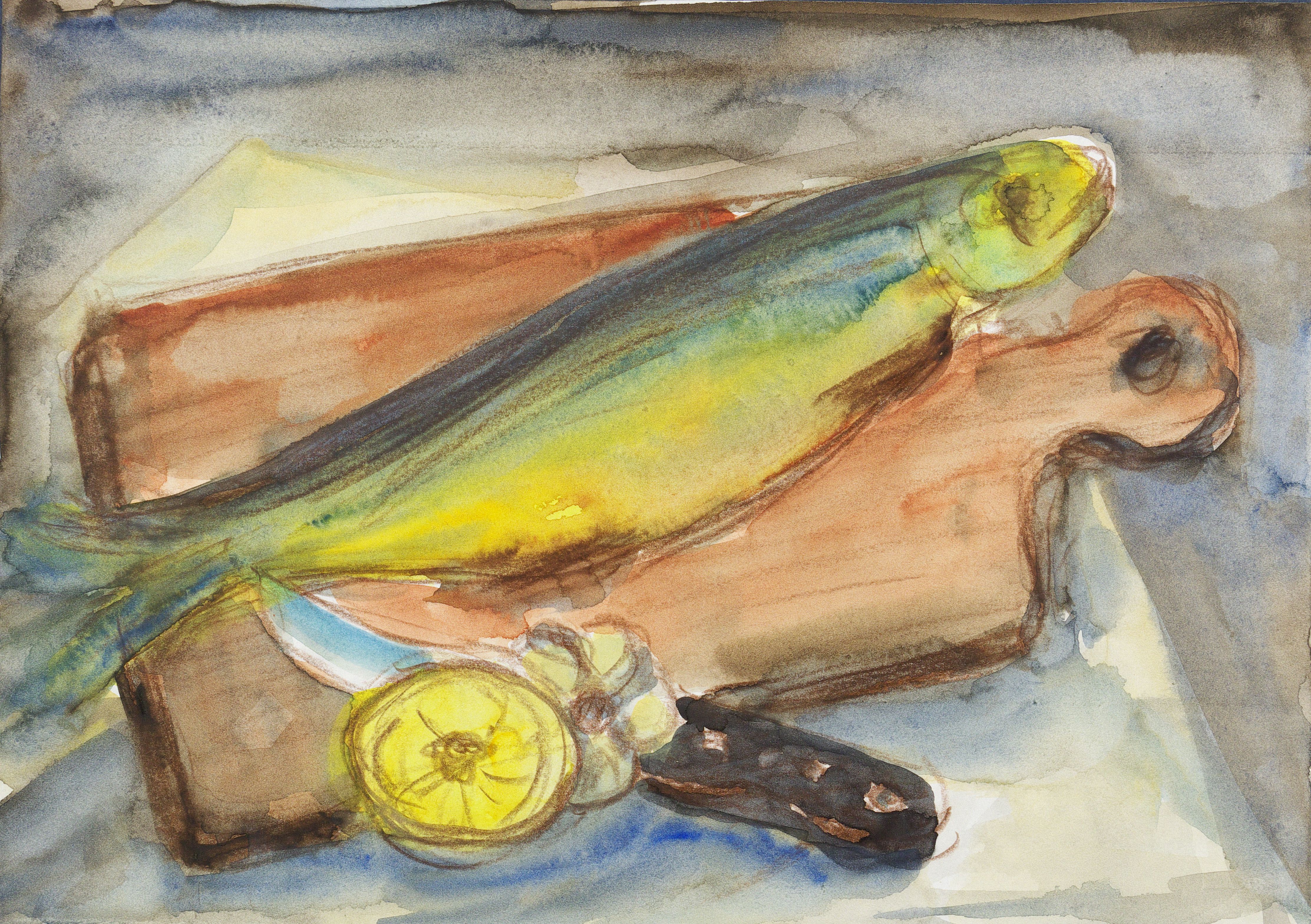 Ranze, Werner. – „Stillleben mit Forelle und Zitrone”.