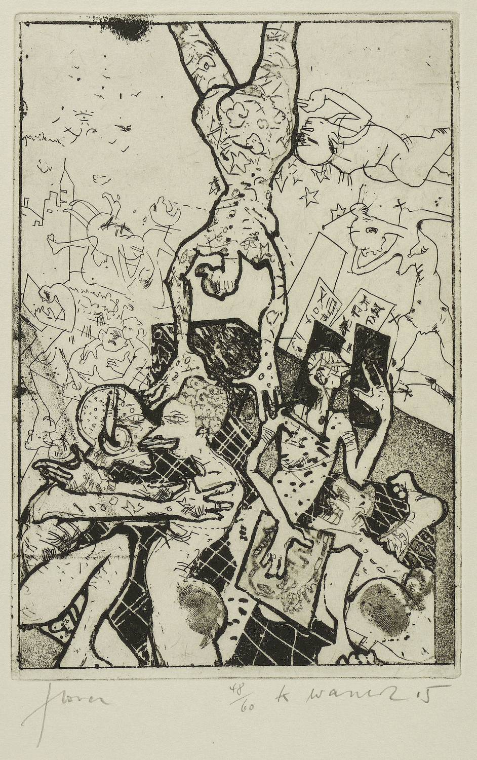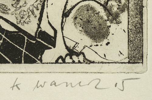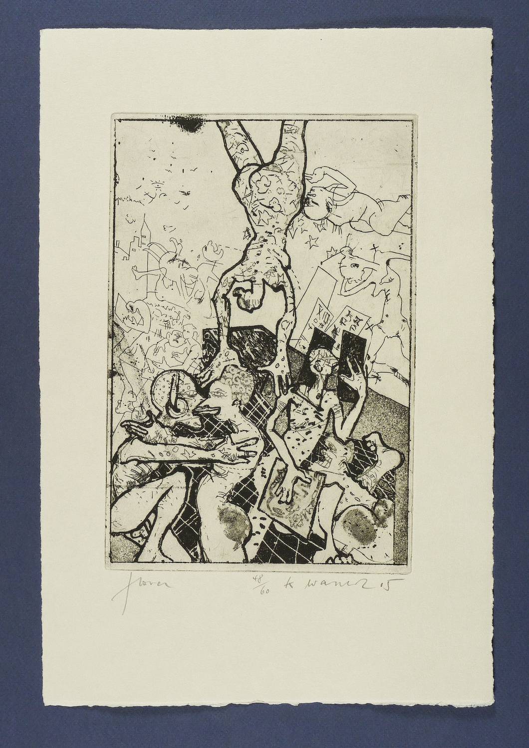 2005. Radierung / Strichätzung, Reservage & Aquatinta, auf hellgrauem Hahnemühle-Bütten. – Originale Künstlergrafik, von Klaus Waschk. – Auflage Exemplar Nr. 48/60. – 26,5 x 18,0 cm (Darstellung / Platte), 39 x 26,5 cm (Blatt).