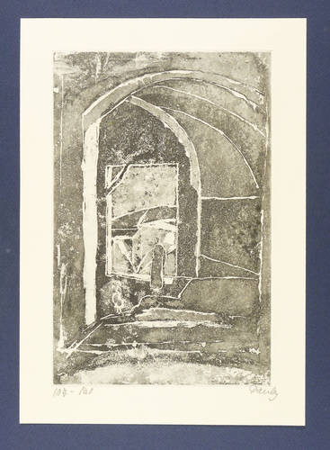 1960. Radierung / Aquatinta, in Schwarz, auf hellchamois Velin. – Originale Künstlergrafik, von Charlotte Elfriede Pauly. – Auflage Exemplar Nr. 107/120. – 24,5 x 16,0 cm (Darstellung / Platte), 30 x 21 cm (Blatt).