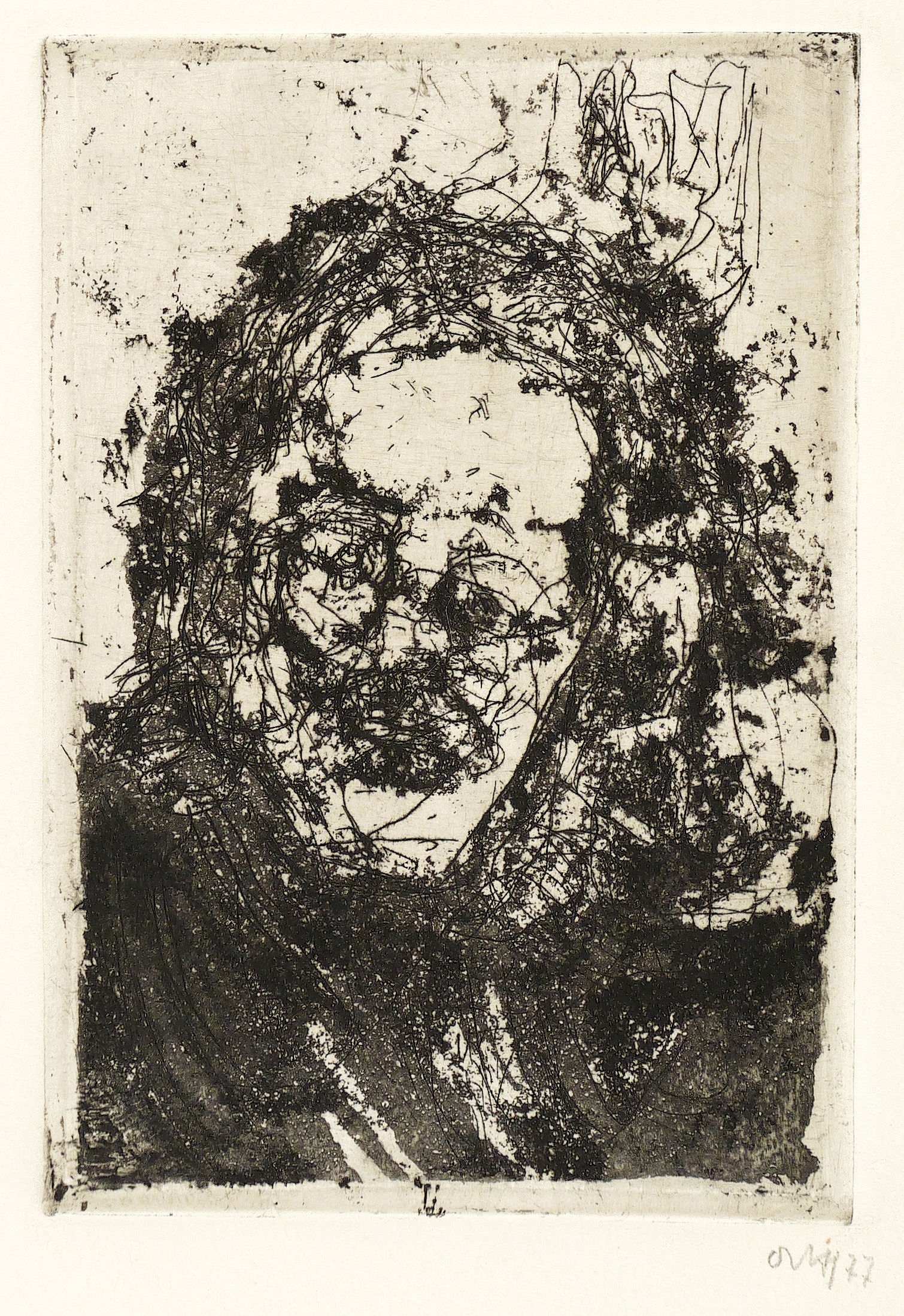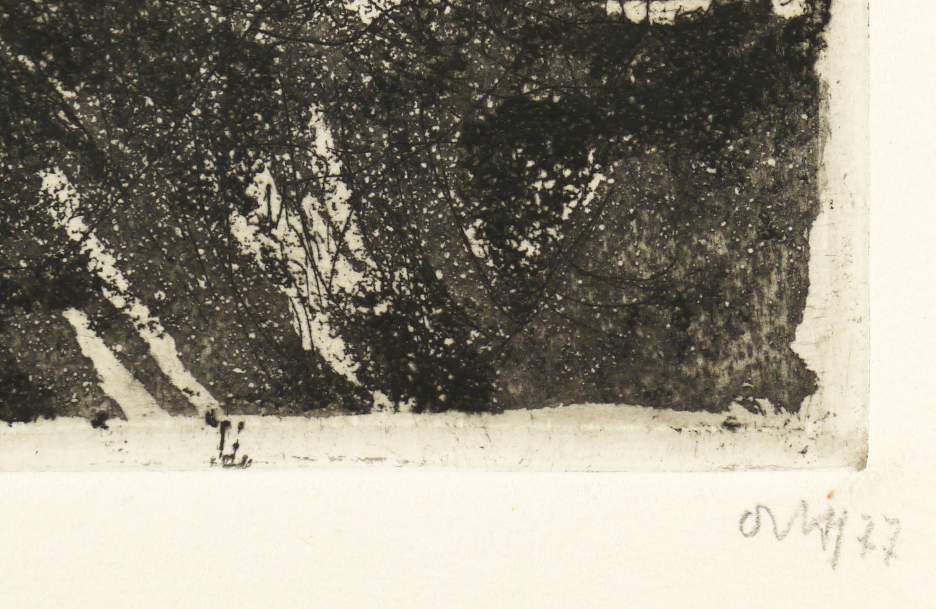 1976/1977. Radierung / Aquatinta & Strichätzung, in Schwarz, mit Plattenton, auf hellem Büttenkarton. – Originale Künstlergrafik, von Otto Niemeyer-Holstein. – 13,8 x 9,5 cm (Darstellung / Platte), 27 x 20 cm (Blatt).