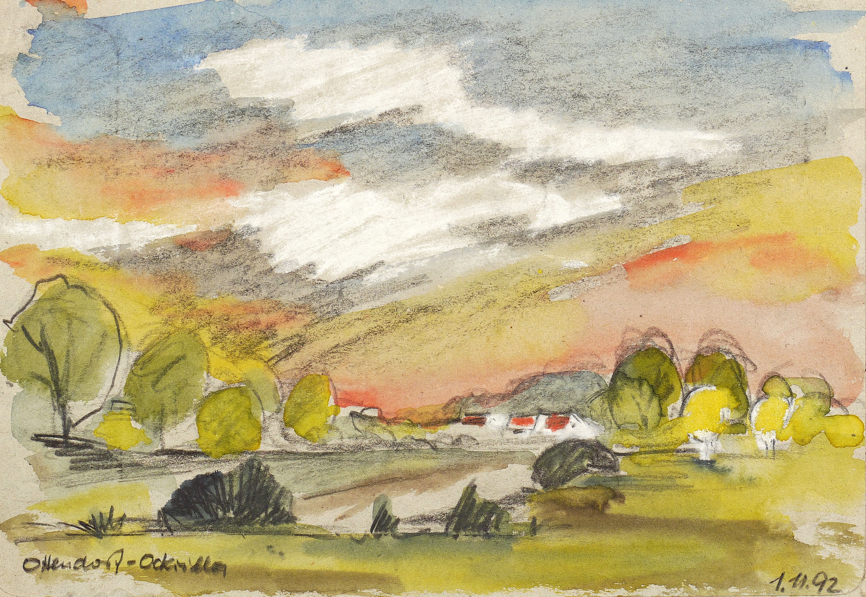 Rechts unten in Bleistift datiert. Links eigenhändig betitelt. – Im oberen Rand kleiner hinterlegter Einriss. Sonst tadellos erhalten.
