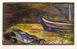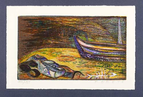 Esteban Fekete (1924 Cinkota / Budapest - 2009 Dieburg). Deutsch-argentinischer Maler, Zeichner und Grafiker. Arbeitete in verschiedenen Techniken wie Öl und Tempera, aber auch in Mischtechniken auf Papier, Holz oder Hartfaser. Anfang der 1970er Jahre entstanden Email-Bilder, Zeichnungen und Linolschnitt. Seine ureigene Technik ist allerdings der Holzschnitt, insbesondere der Farbholzschnitt, mit dem er sich einen Namen machte. So entwickelte er eine eigene Schnitt- und Bearbeitungstechnik für die Holzplatten. Für die Farbgebung verwendete er eigens dafür gesuchte Ölfarben.