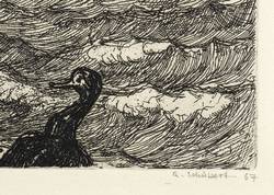 1967. Radierung / Strichätzung, in Schwarz, auf hellem Karton. – Originale Künstlergrafik, von Renate Schubert. – 11,1 x 20,0 cm (Darstellung / Platte), 19 x 29 cm (Blatt).