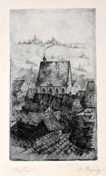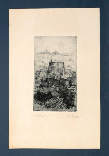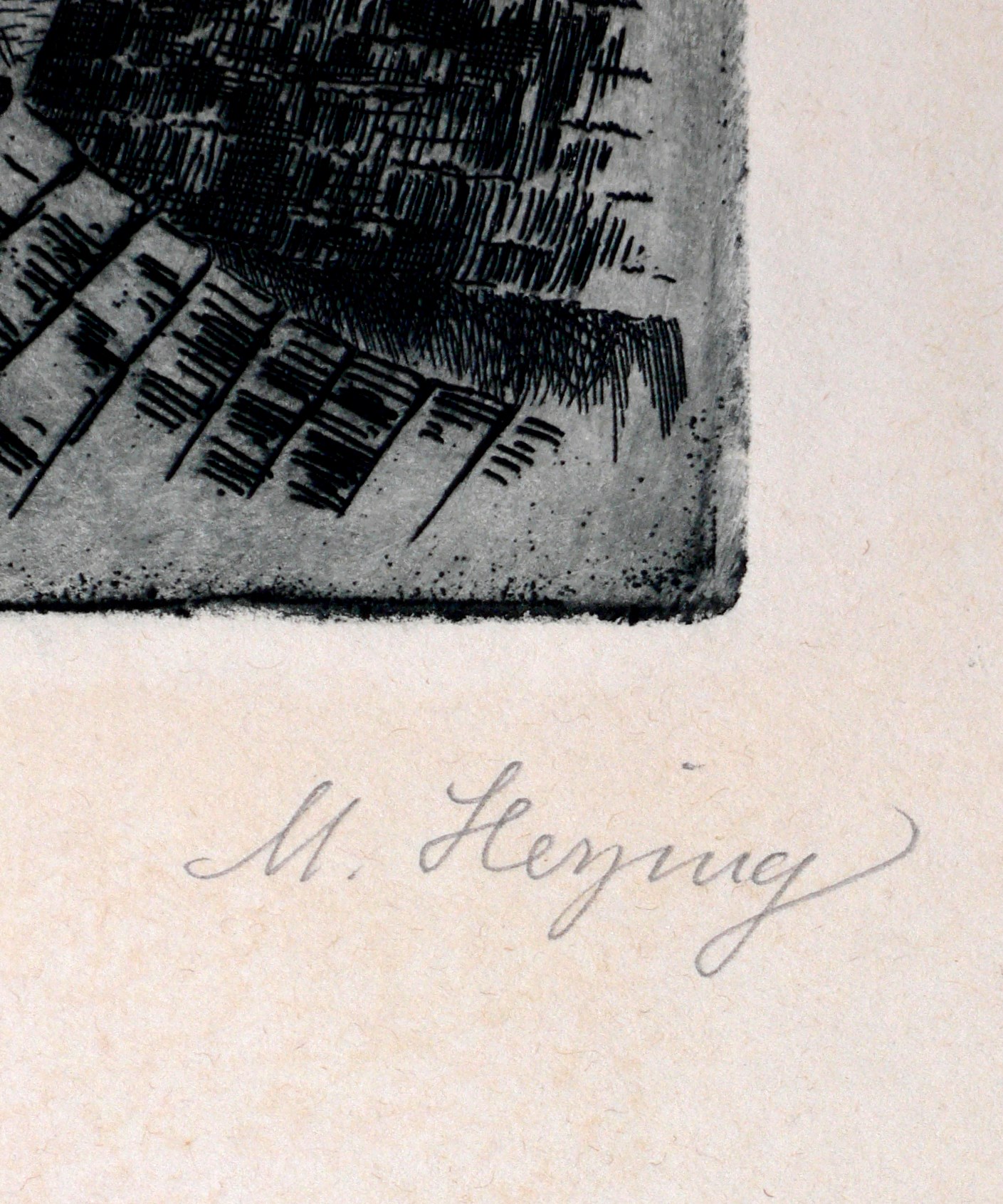 Um 1925. Radierung / Strichätzung, mit Plattenton, in Blauschwarz, auf hellem Velin. – Originale Künstlergrafik, von Minni Herzing. – 17,7 x 10,0 cm (Darstellung / Platte), 34 x 22 cm (Blatt).