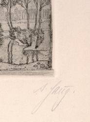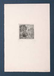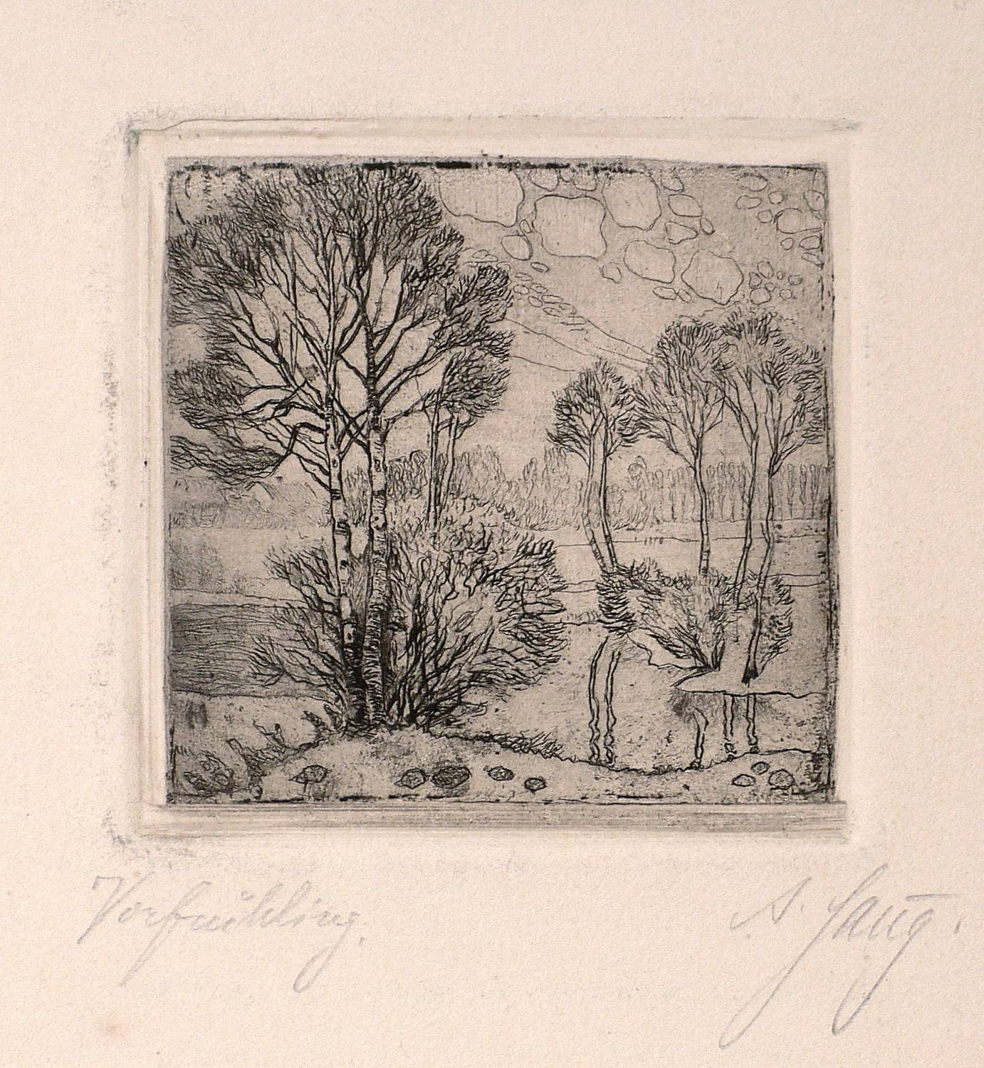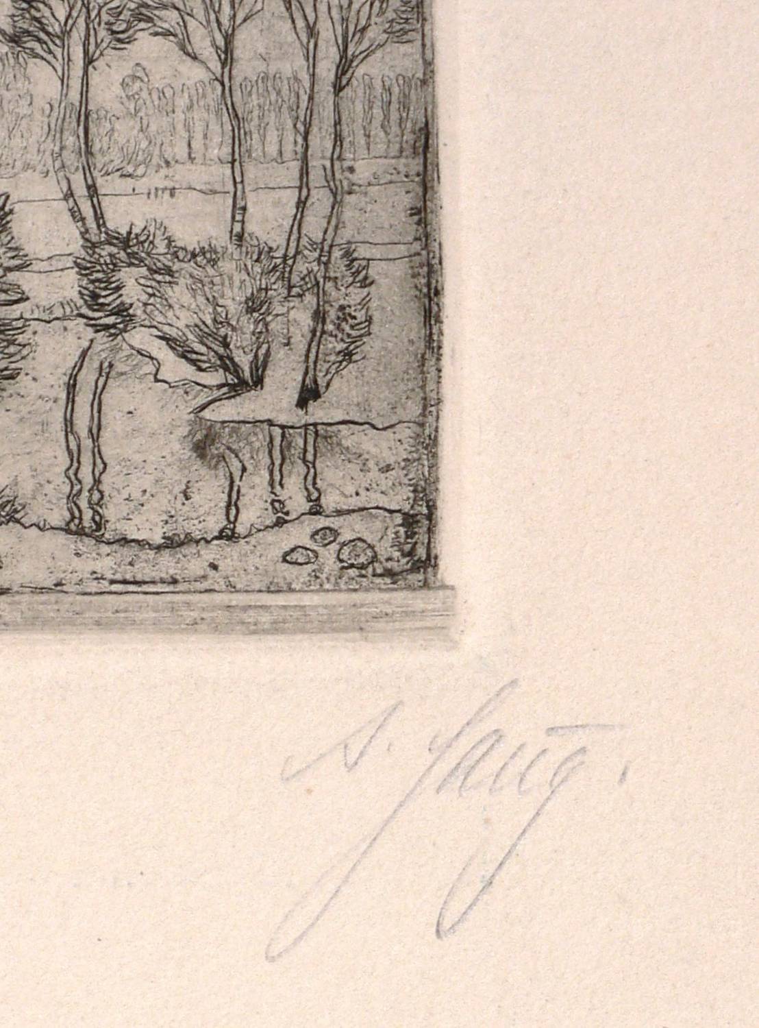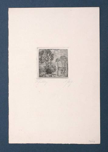 Um 1920. Radierung / Strichätzung, mit Plattenton, in Schwarz, auf gelblichem Kupferdruck. – Originale Künstlergrafik, von Deutsch (20. Jh.). – 6,5 x 6,5 cm (Darstellung), 7,0 x 7,0 cm (Platte), 30 x 20 cm (Blatt).