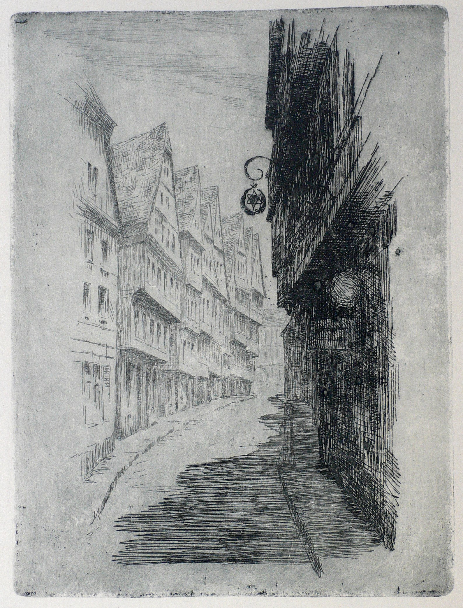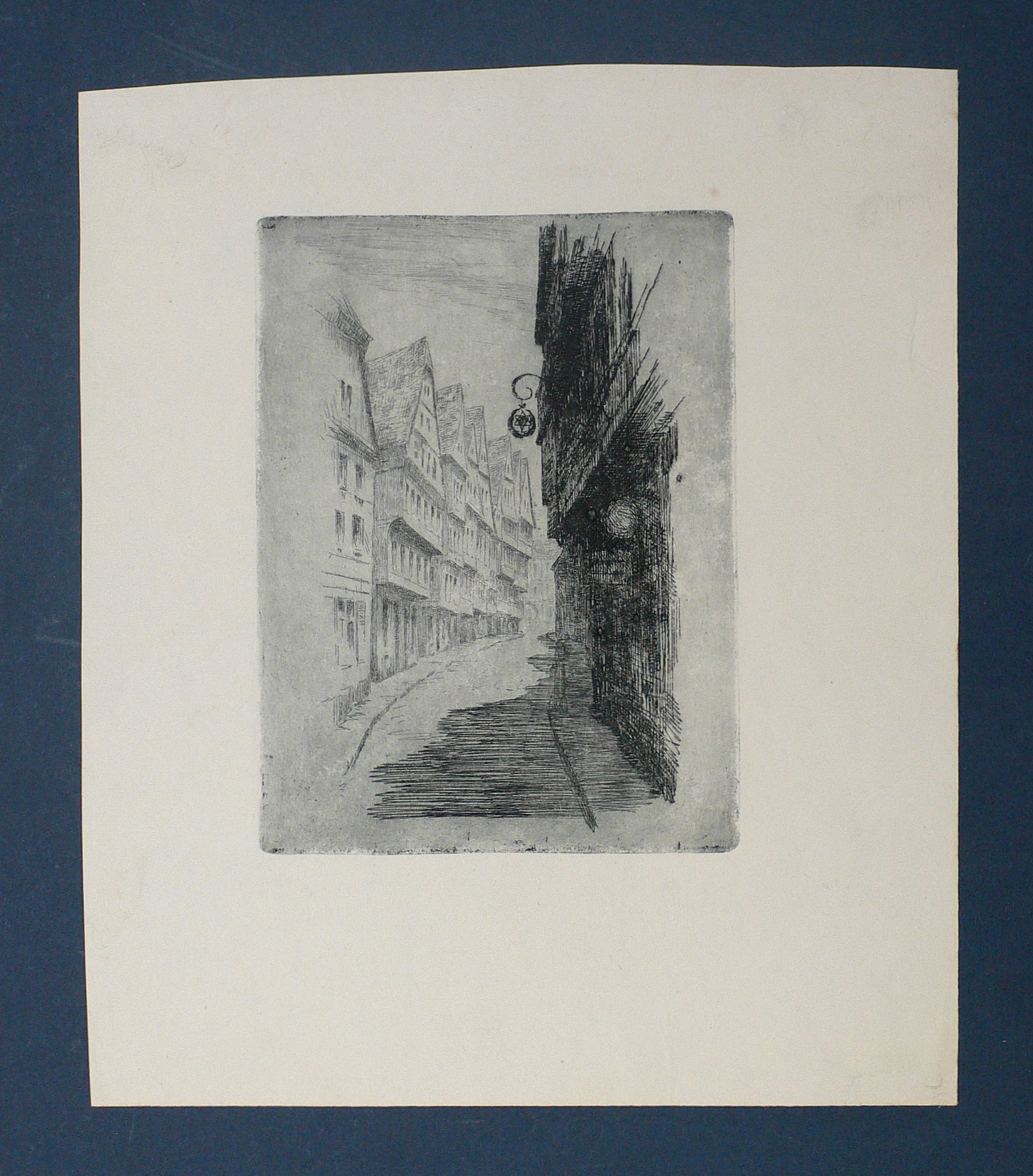 Um 1925. Radierung / Strichätzung, in Schwarz, mit Plattenton, auf chamois Velin. – Originale Künstlergrafik, von Minni Herzing. – 15,7 x 12,0 cm (Darstellung / Platte), 26 x 22 cm (Blatt).