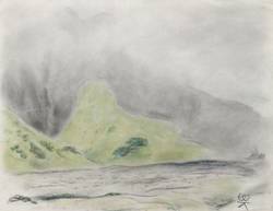 Unten rechts monogrammiert: ″EK″. Verso in Bleistift betitelt und datiert. – Kaum merkliche Kratzspur im Himmel rechts oben. Blattrand etwas, rechts unten stärker knickspurig. Insgesamt mäßig gut erhalten.