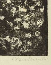 Um 1920. Holzschnitt, in Schwarz, auf gelblichem Velin. – Originale Künstlergrafik, von Robert Budzinski. – 23,1 x 16,6 cm (Darstellung), 36 x 27 cm (Blatt).
