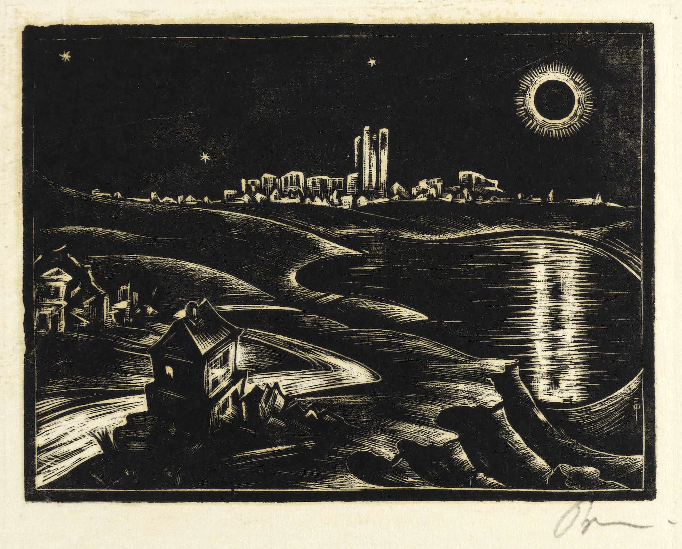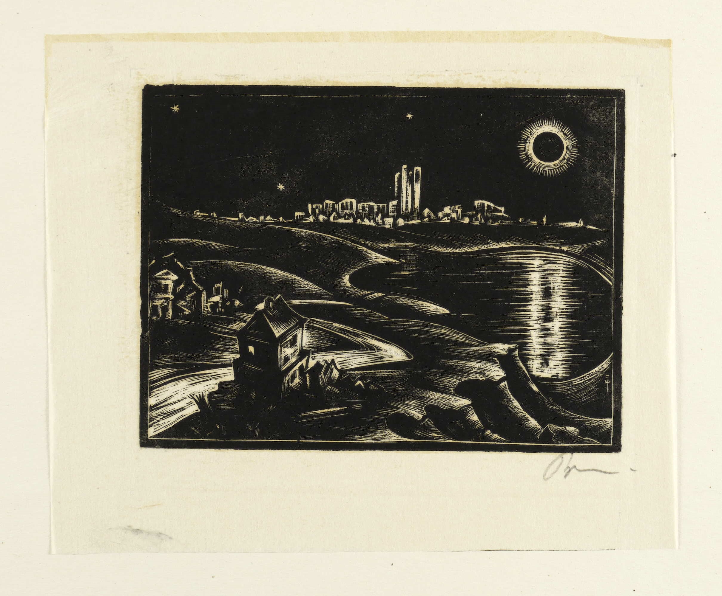 Aus: Walter Preisser, Neun Holzschnitte. Die grosse Stadt (Berlin: Otto von Holten & Gotthard Laske 1930). – Rechts unten in Bleistift signiert: ″Preisser″. – Originaler Abdruck von dem schon 1923 entstandenen Holzschnitt. - Der Herausgeber Gotthard Laske (1882-1936) war ein Berliner Kunstmäzen und Buchliebhaber, der zahlreiche Schriftsteller und Künstler unterstützte. Er war u.a. Auftraggeber einiger bibliophiler Editionen (Vgl.: Fritz Homeyer, Deutsche Juden als Bibliophilen und Antiquare, Tübingen 1963, S. 50). – Original auf Trägerkarton montiert. Tadellos erhalten. Sehr guter Zustand.
