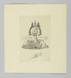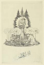 1924. Radierung / Strichätzung, in Schwarz, auf gelbem J.W.-Zanders-Bütten. – Originale Künstlergrafik, von Ferdinand Staeger. – Auflage 100 Exemplare. – 17,9 x 12,2 cm (Darstellung / Platte), 26 x 24 cm (Blatt).