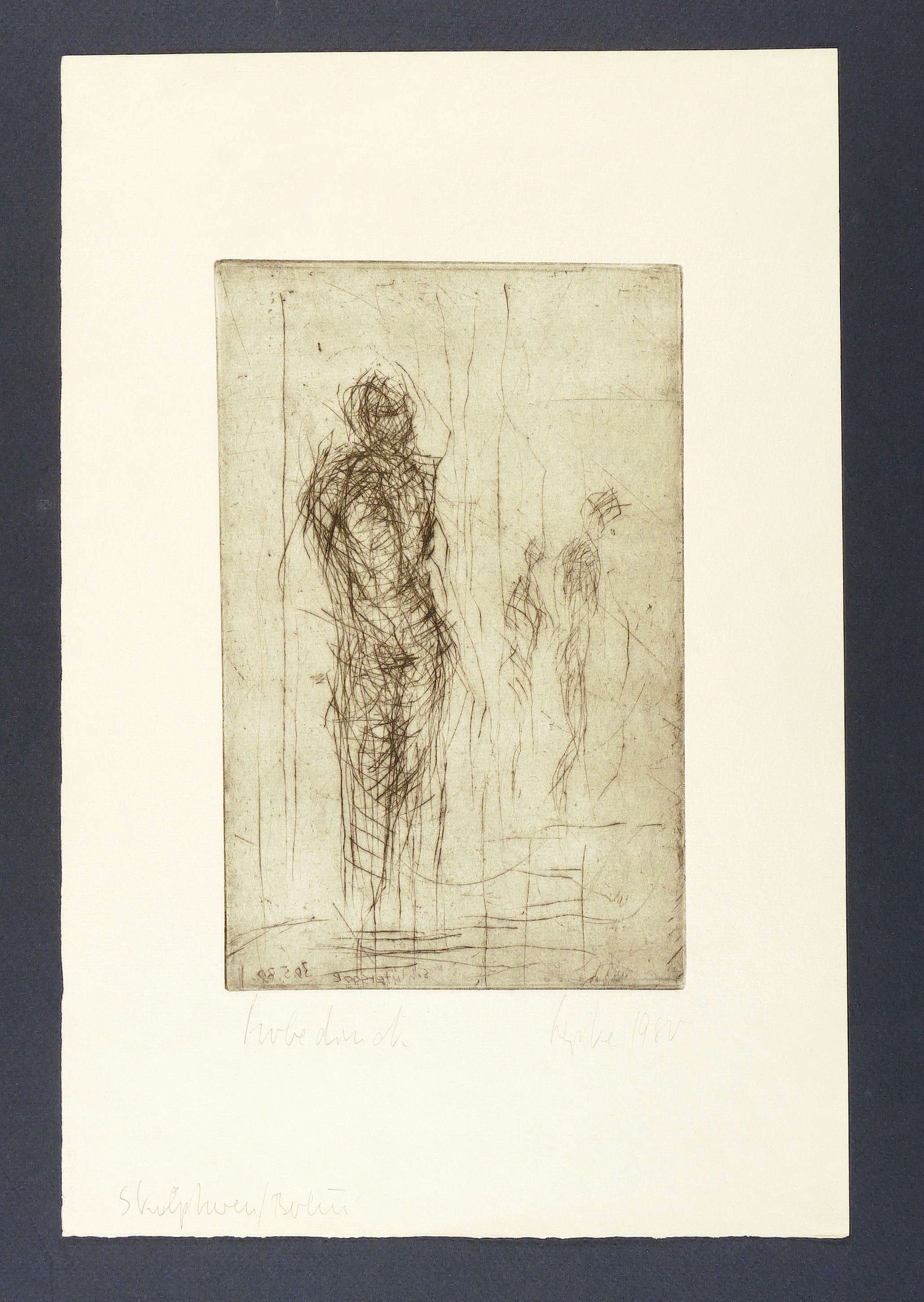 1980. Radierung / Kaltnadel, in Schwarz, mit Plattenton. – Originale Künstlergrafik, von Gerda Lepke. – Probedruck. – 23,3 x 14,8 cm (Darstellung / Platte), 38 x 25 cm (Blatt).