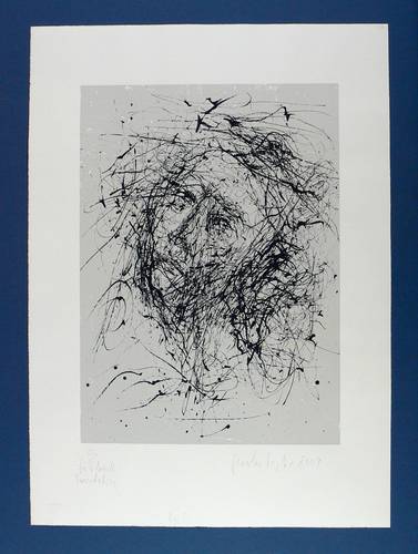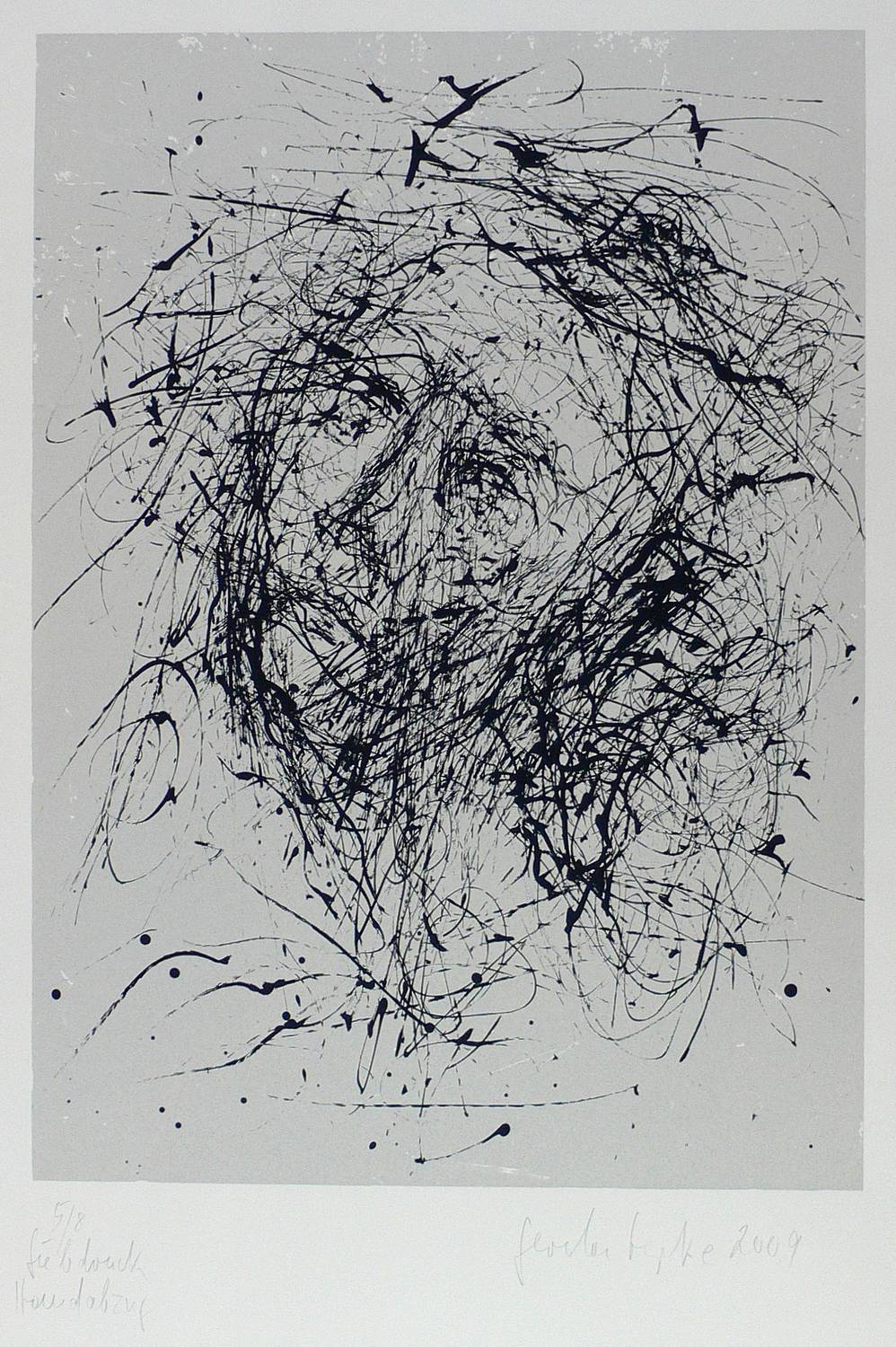2009. Siebdruck / Serigrafie, in Schwarz, über Toplatte, auf Büttenpapier. – Originale Künstlergrafik, von Gerda Lepke. – Auflage Exemplar Nr. 5/8. – 50,0 x 36,0 cm (Darstellung), 70 x 50 cm (Blatt).