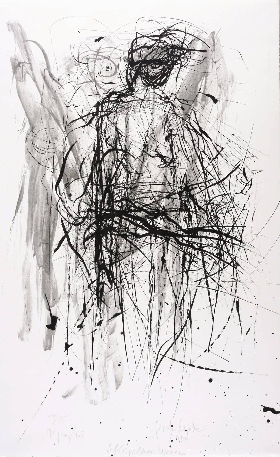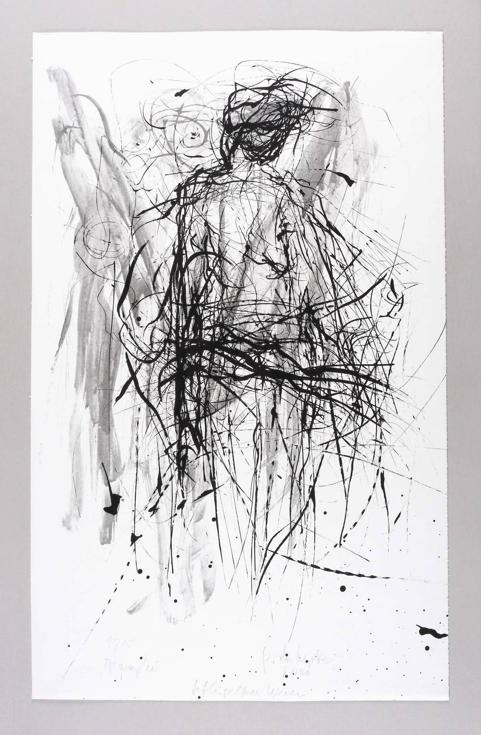 2000. Farbalgrafie / Pinselalgrafie, in Hellgrau & Schwarz, auf kräftigem weißem Velin. – Originale Künstlergrafik, von Gerda Lepke. – Auflage Exemplar Nr. 13/15. – 71 x 44 cm (Blatt), 67,3 x 43,1 cm (Darstellung / Druckbild).