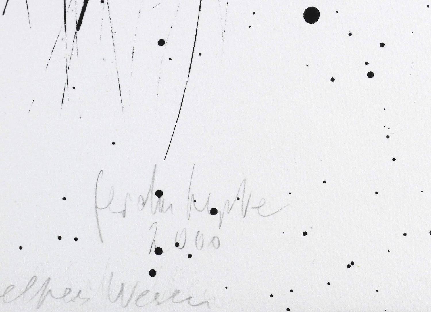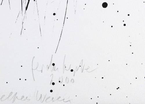 Rechts unten in Bleistift signiert und datiert: ″Gerda Lepke 2000″. Links Auflagen- und Technikbezeichnung: ″13/15 Algraphie″. Mittig im unteren Rand Titel: ″Geflügeltes Wesen″. – Sehr guter Zustand.