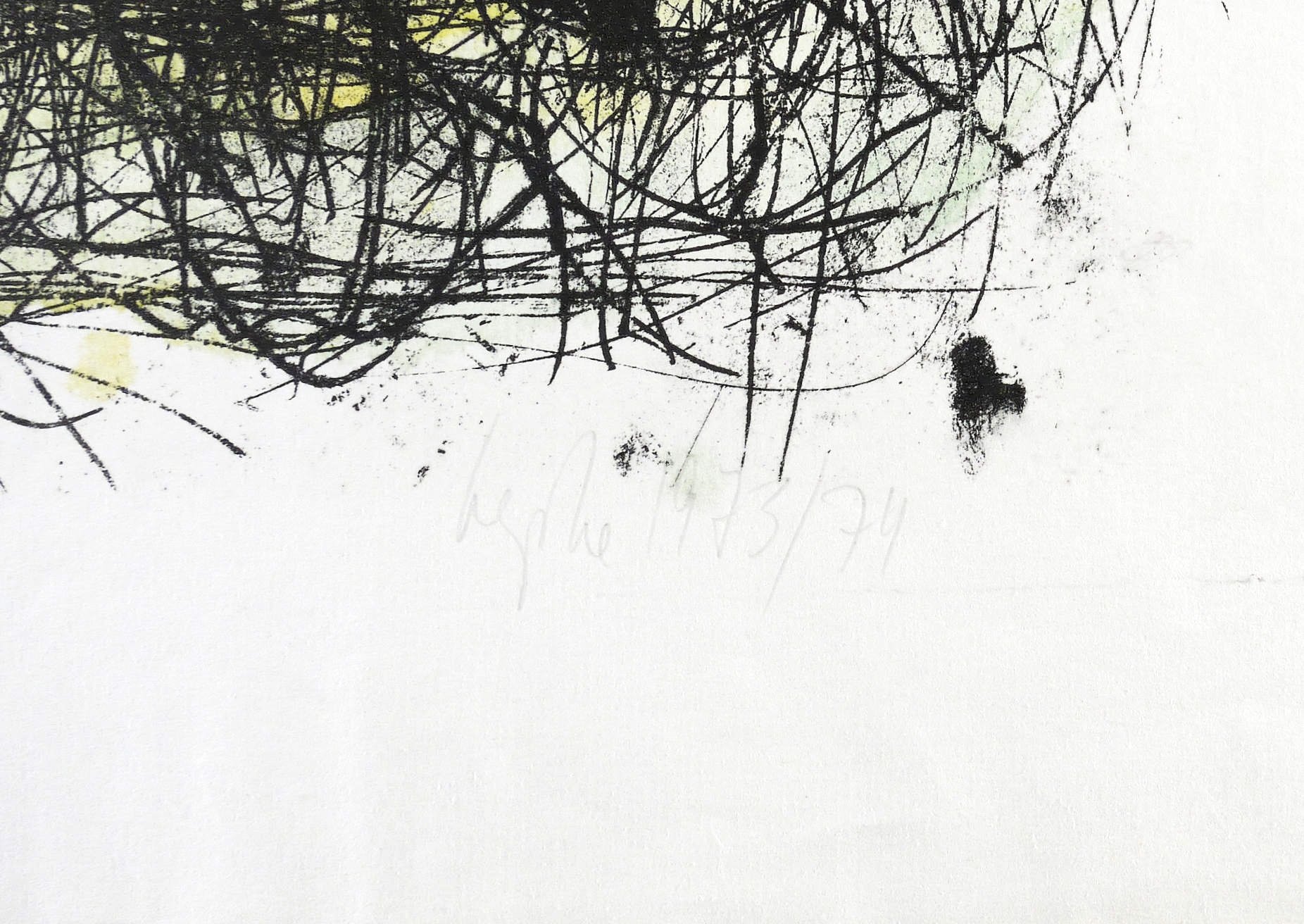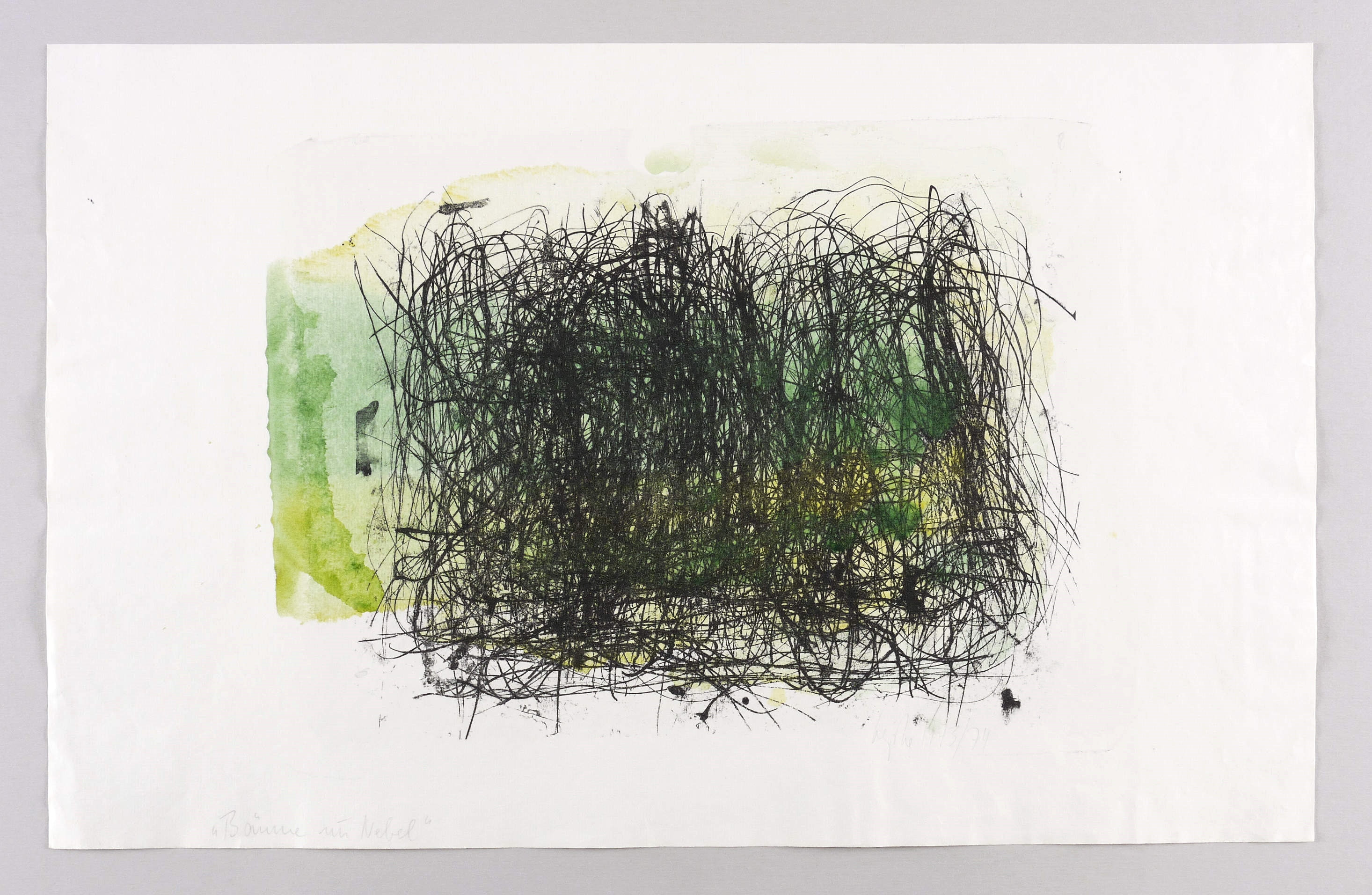 Rechts unten in Bleistift signiert und datiert: ″Lepke 73/74″. Im Blattrand links unten Titel: ″Bäume im Nebel″. Verso nochmals Titel und Technikbezeichnung. – Minimal griffspurig. Insgesamt guter Zustand.