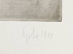 1981. Radierung / Kaltnadel, in Schwarz, mit Plattenton, auf hellchamois Weißenborn. – Originale Künstlergrafik, von Gerda Lepke. – Auflage Exemplar Nr. 19/20. – 16,5 x 13,7 cm (Darstellung / Platte), 25 x 22 cm (Blatt).