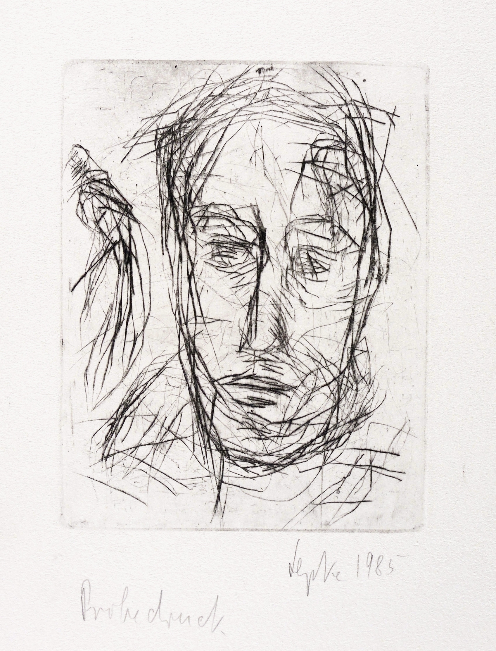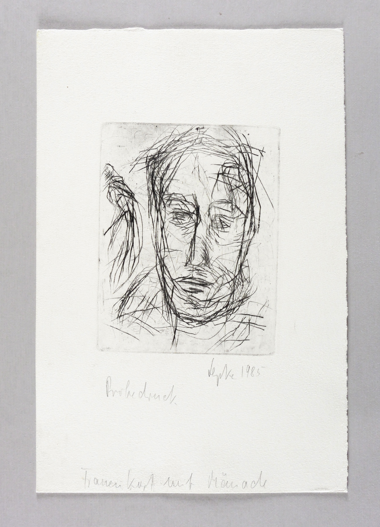 Rechts unten in Bleistift signiert und datiert: ″Lepke 1985″. Links Auflagenbezeichnung: ″Probedruck″. Im unteren Blattrand Titel: ″Frauenkopf mit Mänade″. – Sehr guter Zustand.
