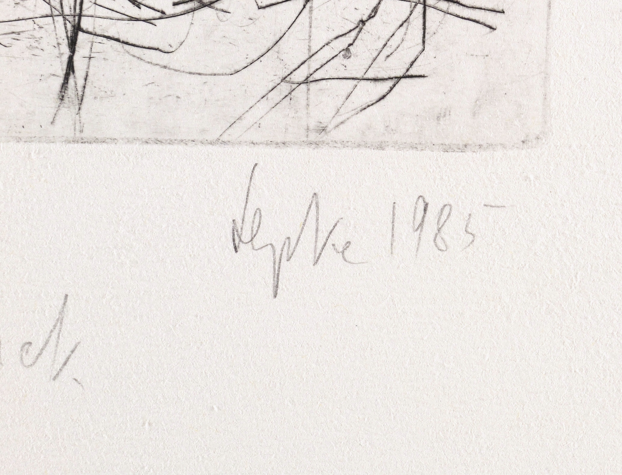 1985. Radierung / Kaltnadel, in Schwarz, auf schwerem hellchamois Velin. – Originale Künstlergrafik, von Gerda Lepke. – Probedruck. – 14,8 x 11,5 cm (Darstellung / Platte), 30 x 20 cm (Blatt).
