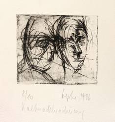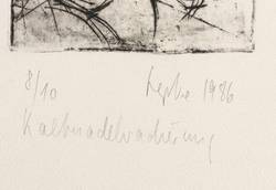 1986. Radierung / Kaltnadel, in Schwarz, auf schwerem chamois Velin. – Originale Künstlergrafik, von Gerda Lepke. – Auflage Exemplar Nr. 8/10. – 10,5 x 12,0 cm (Darstellung / Platte), 40 x 27 cm (Blatt).